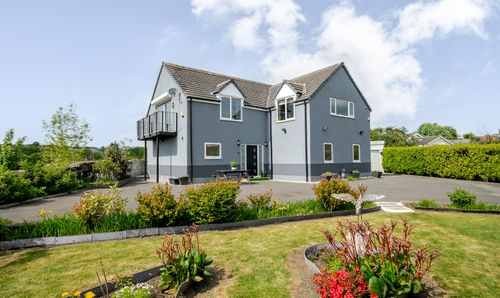 The property stands in approaching 1/2 an acre of gardens. To the front there is a lawned garden with planted trees, flowers and shrubs, rockery, period style street lamp and a flagged pathway giving access down the left hand side where there is lawned garden ,planted trees and shrubs and stone wall with three display niches and braced timber arched door leading to a continuation of the side garden. This has an extensive block paved patio area, outside cold water tap,planted trees and shrubs and provides access to the rear.