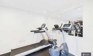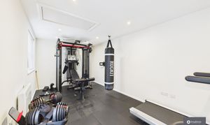 The converted garage offers exceptional versatility — currently a home gym, it could also function as a dedicated office, studio, or additional entertaining space.