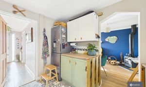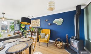 The welcoming entrance hall leads into the spacious living room - a warm and inviting space centred around a recently installed log-burner, perfect for cosy evenings. At the rear, the modernised kitchen has been tastefully upgraded to create an attractive and practical cooking space with ample storage and natural light.