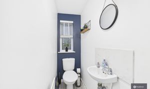 The ground floor also benefits from a spacious separate utility room, offering additional counter space, room for appliances, and shelving. A modern downstairs W.C. completes the ground floor layout.