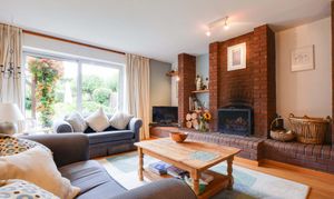 With double glazed patio doors to the rear elevation, oak floor, chimney breast with open log burning fire (additional gas point still in place), brick surround and hearth, TV point, interconnecting door to the sun lounge, radiator.