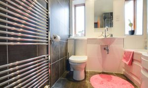 With double glazed window to the front elevation, shower cubicle, low-level WC, bidet, wash hand basin, tiled walls, downlights, shaver point, chrome wall mounted radiator.