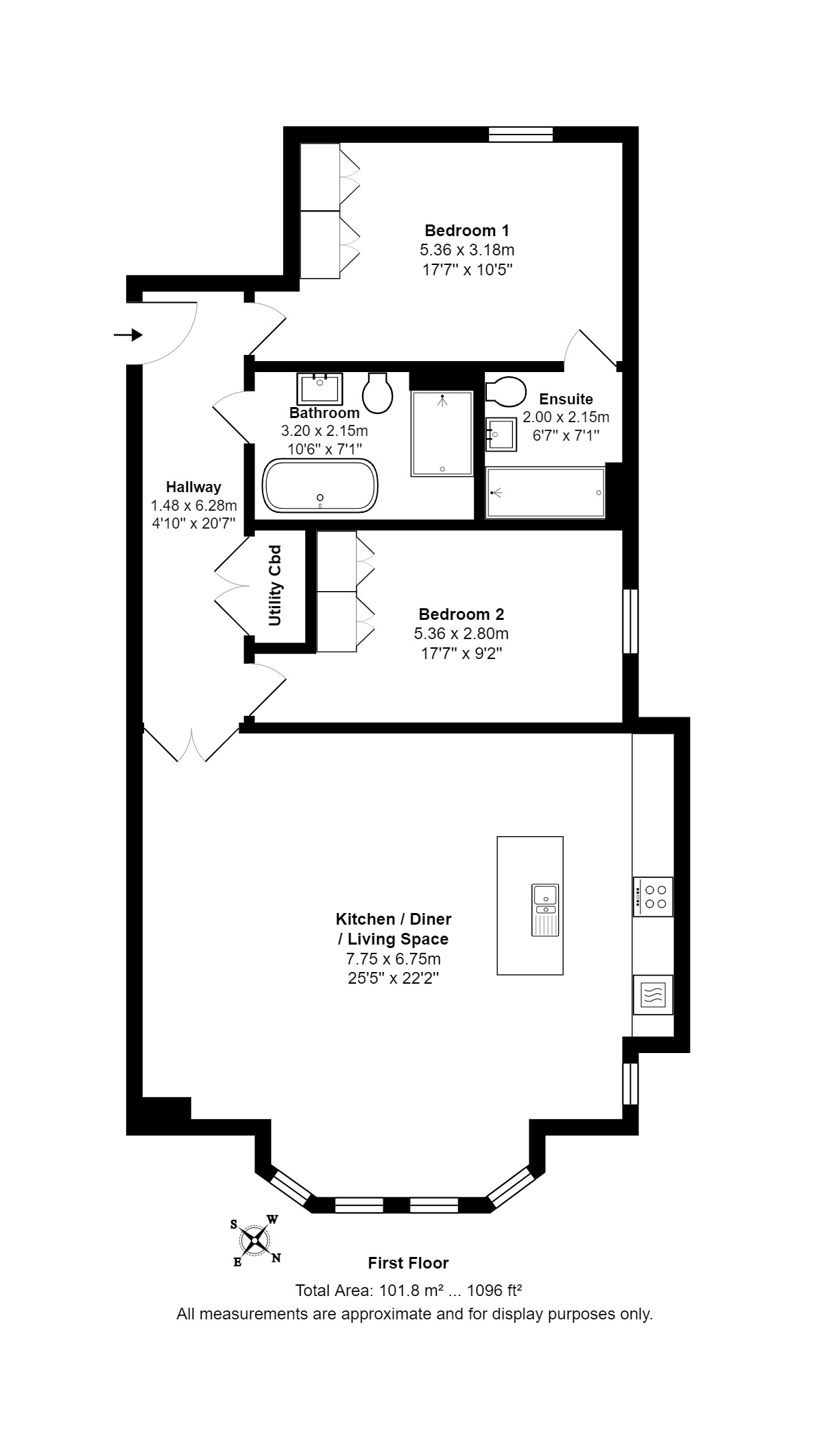 - Approx Sq Feet: 1,096 sqft
