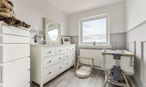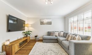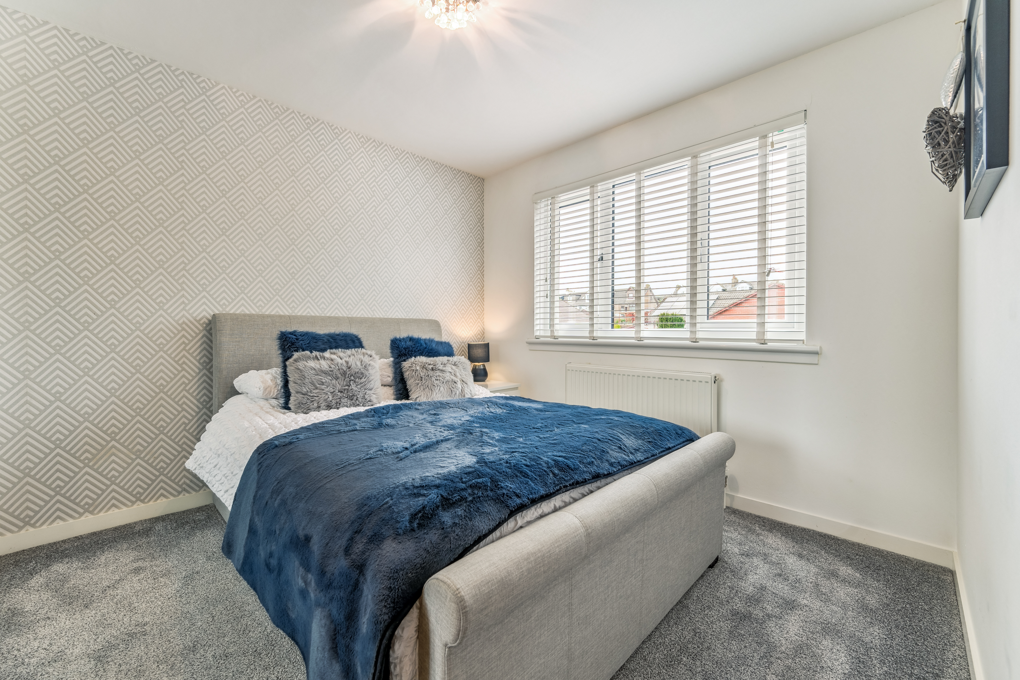 The three bedrooms offer a fantastic balance of space and versatility. The primary bedroom is a generous double, currently hosting a kingsize bed, benefiting from built-in wardrobe space, ensuring plenty of storage while still leaving room for additional furnishings. The second bedroom, also a well-sized double, mirrors these benefits, making it an excellent space for guests, children, or even a dressing room. The third bedroom, though smaller, provides plenty of flexibility—it can serve as a child’s bedroom, a home office, or even a hobby room to suit your needs.