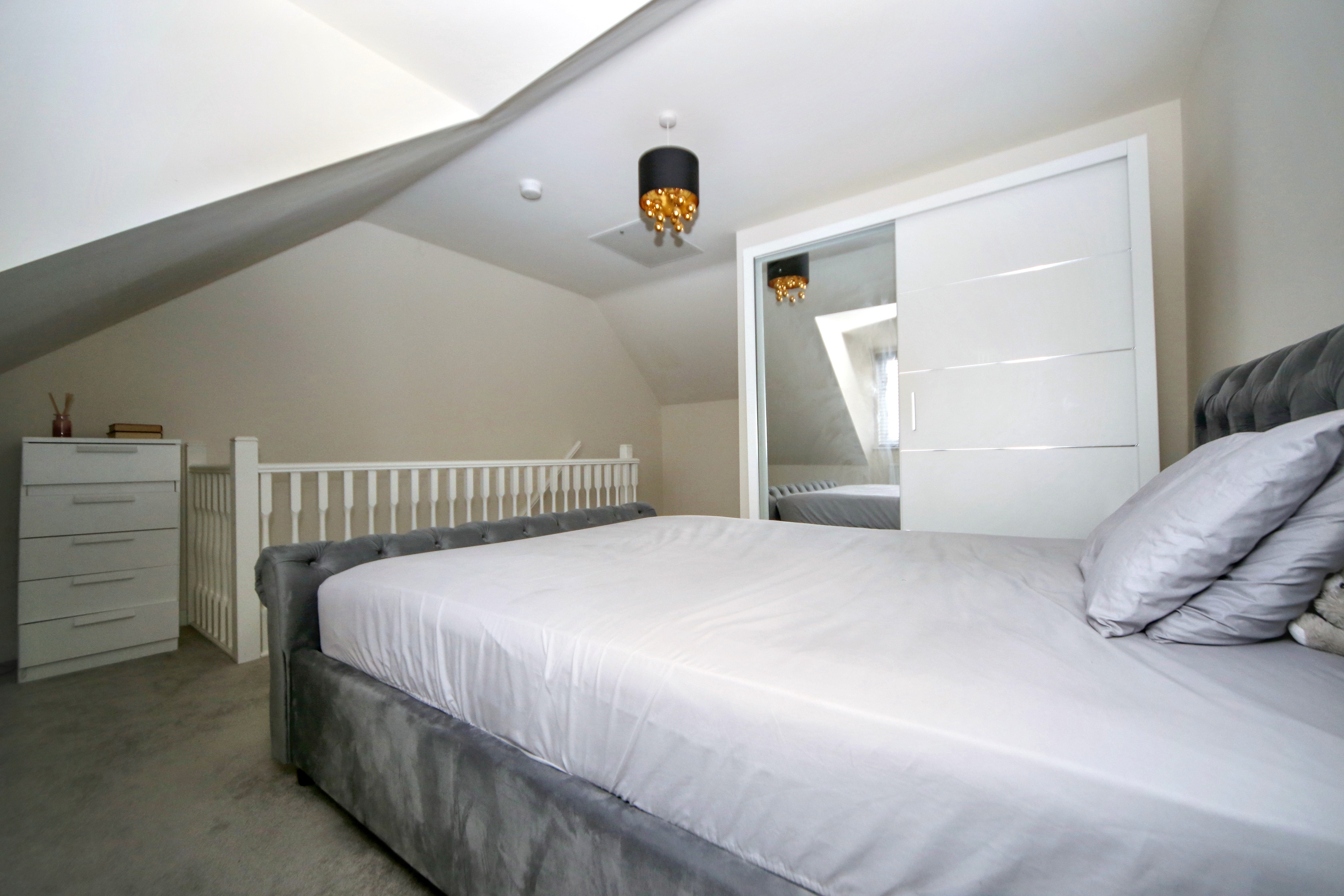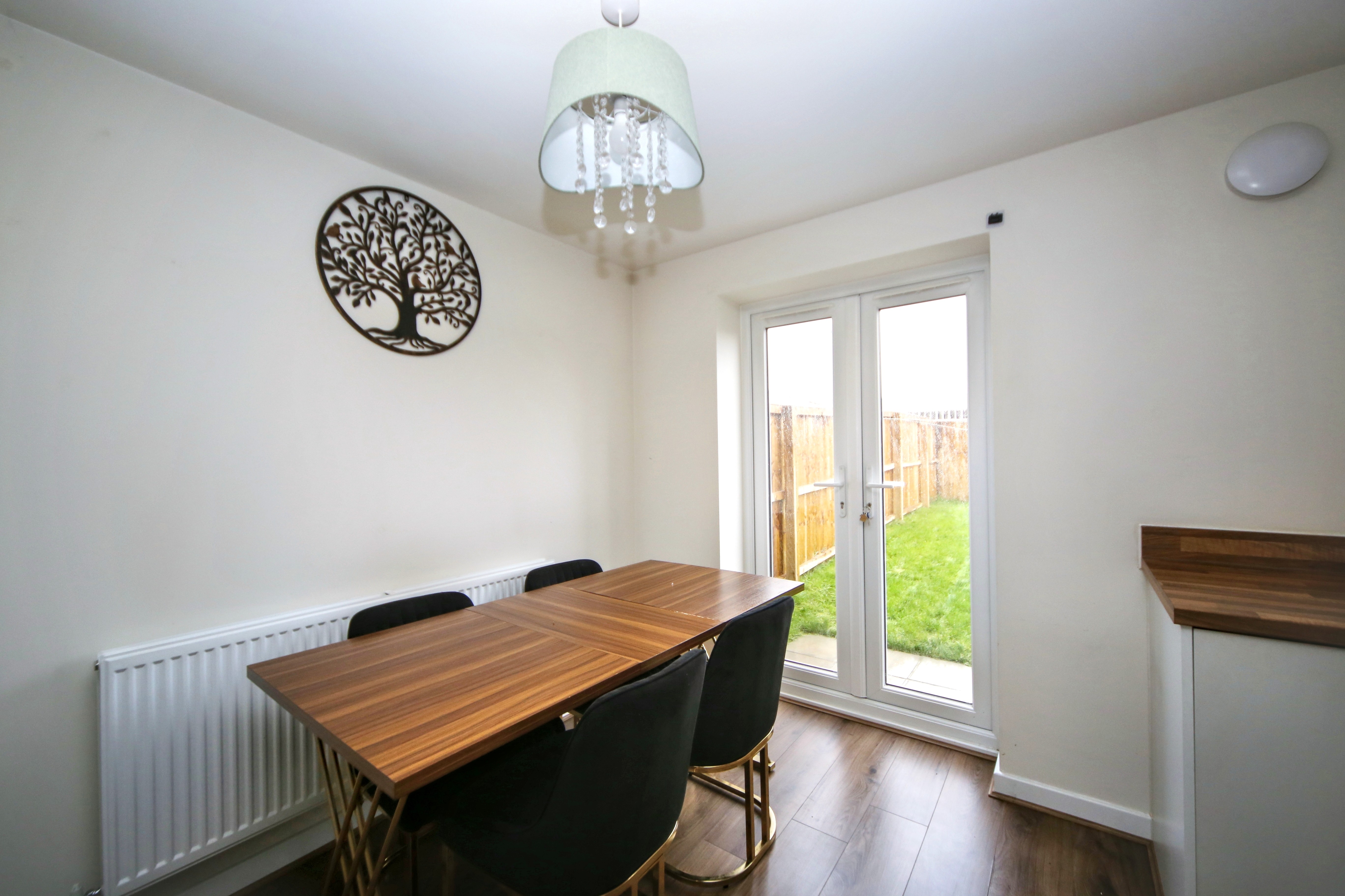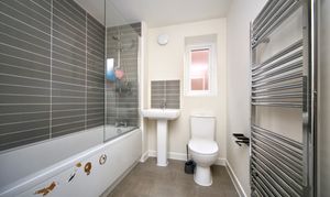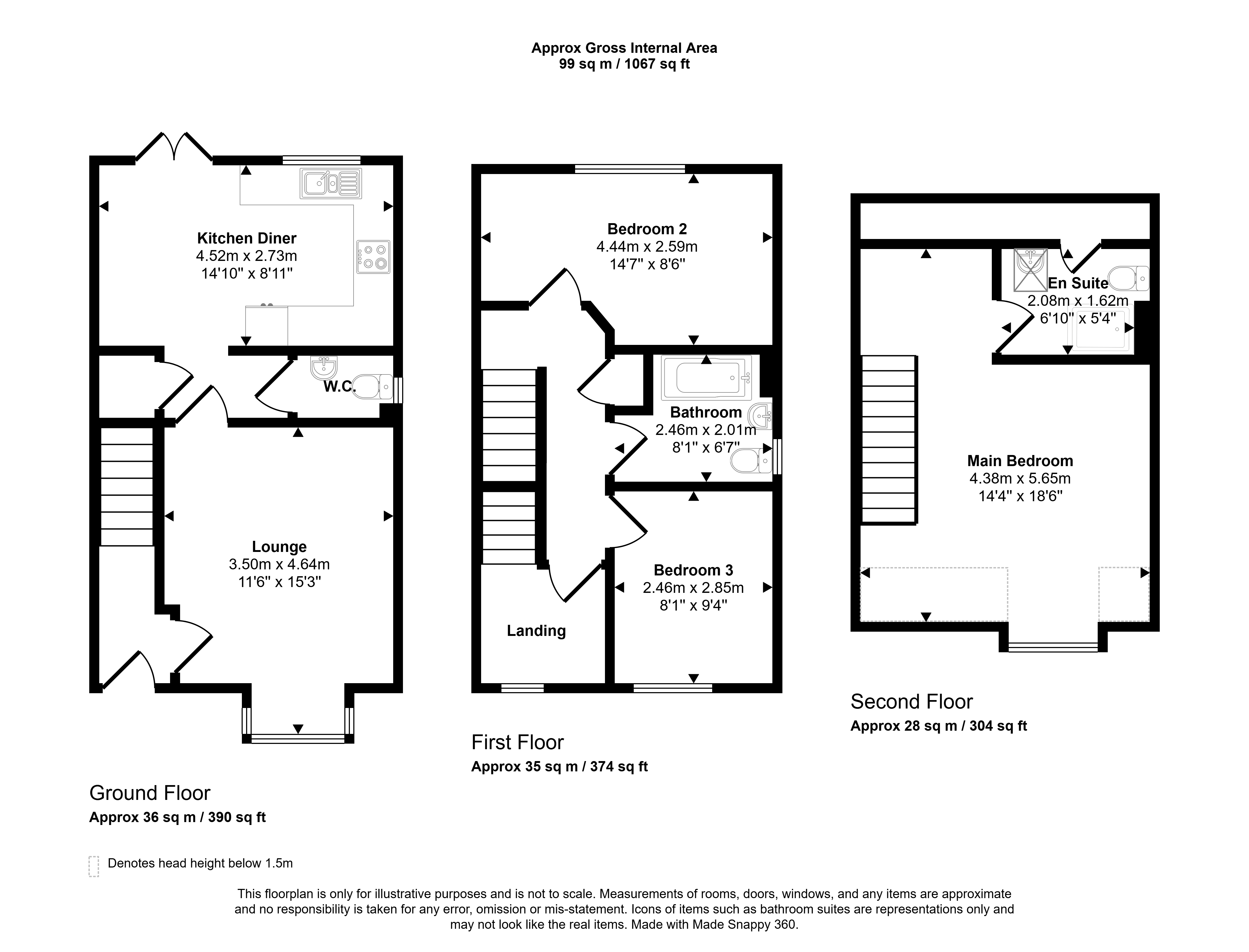 The accommodation is arranged over three floors. The ground floor includes a welcoming entrance hall, a spacious lounge with a bay-fronted window, a stylish kitchen and dining area with integrated appliances, and a convenient W.C. On the first floor, the landing area leads to two well-sized bedrooms and the modern family bathroom. The second floor is dedicated to the large master bedroom, which benefits from its own private en suite.