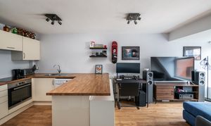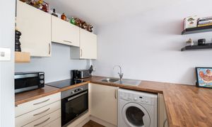 Located on the top floor and to the rear of Hamilton House on Bell Street and enjoying elevated easterly views, the apartment itself is comprised of an entrance hall with storage space for coats and shoes leading to a sleek, tiled bathroom with shower over bath. The open planned kitchen / reception room is well appointed with integrated appliances, ample cupboard storage, breakfast bar and living room with space for a large sofa, TV, coffee table and desk. The double bedroom is bright and airy with potential for a wardrobe and bedside cabinets.