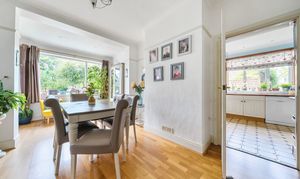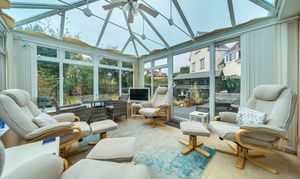 The front opens to a porch and then to an elegant period hallway. Double doors open to the dining room with a large window overlooking the rear garden which in turn opens to the large reception room, a triple aspect room with feature fireplace and leaded light windows. This in turn opens via French doors to the conservatory with glazed door opening to the garden. The garden has a decked area close to the house, the remainder is laid to lawn with mature border beds. Another door from the dining room leads to the spacious kitchen/breakfast room, again a double aspect room with glazed door to garden, range of wall and base units, opening to the utility area and cloakroom, and ample space for table and chairs. Bedroom five is accessed from the front porch and has an en-suite shower room.