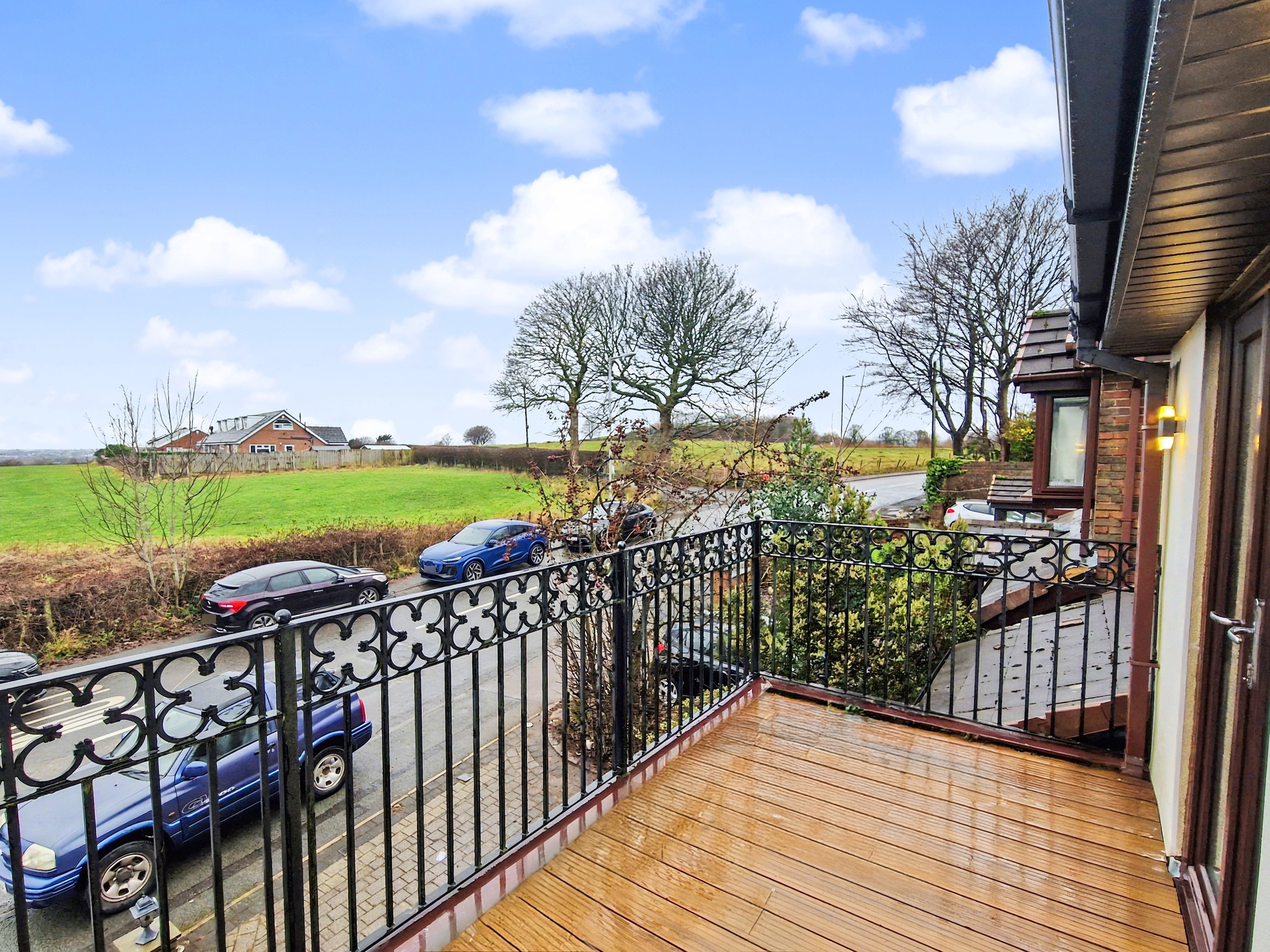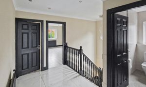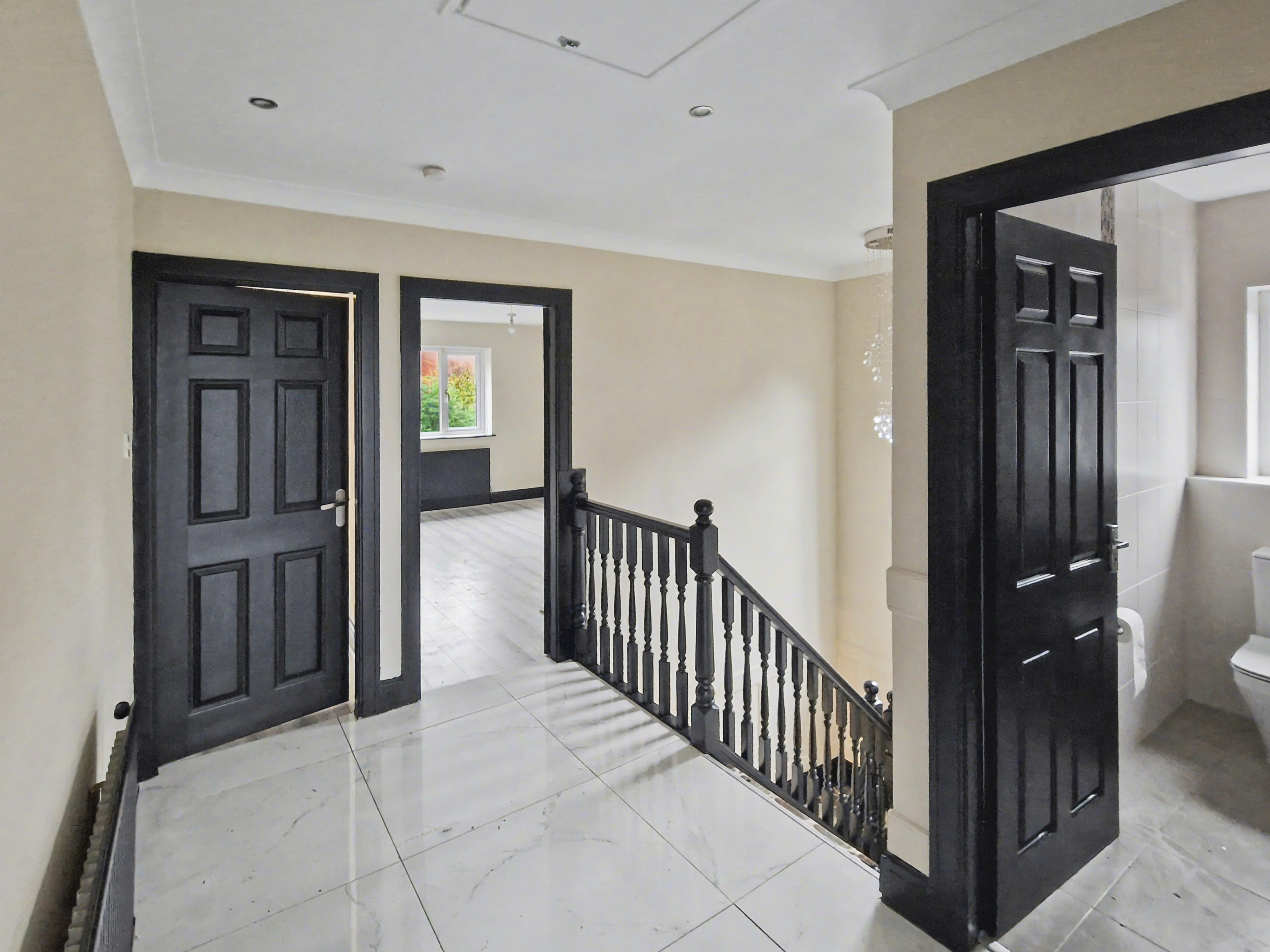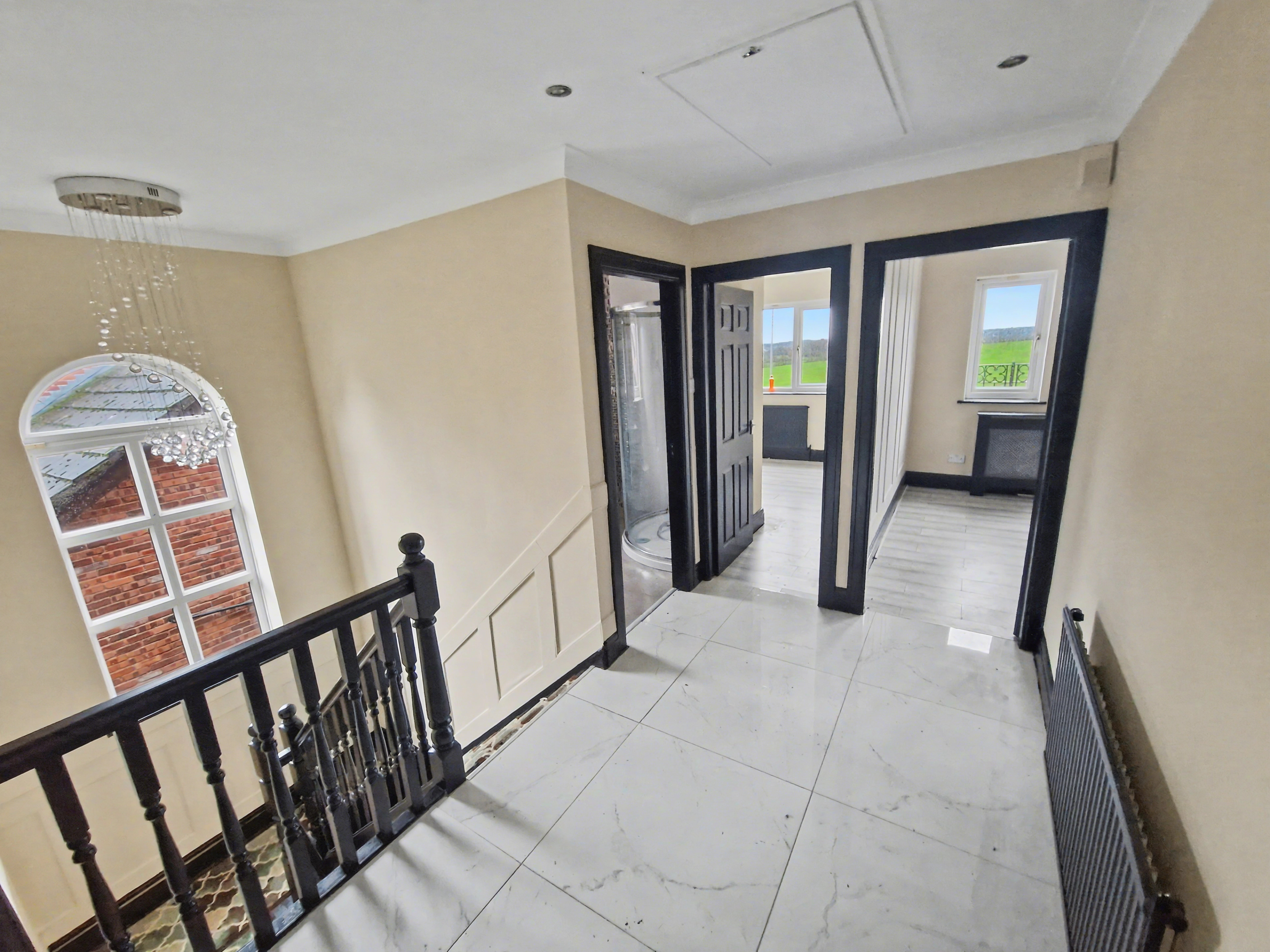 To the first floor, the landing leads to four well-sized double bedrooms. The master bedroom is a spacious king-size room and benefits from a private en-suite. Bedrooms two, three, and four are all generous doubles, with bedroom two further benefiting from fitted wardrobes to one wall and a balcony overlooking open fields, offering spectacular views. The main family Shower-room comprises a three-piece suite.