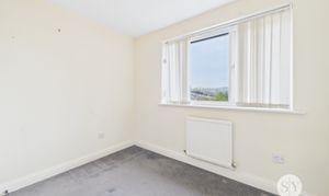 Single bedroom with carpet flooring, double glazed uPVC window, panel radiator.
