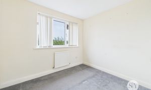 Double bedroom with carpet flooring, double glazed uPVC window, panel radiator.