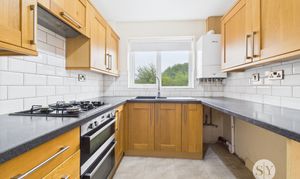 Tiled flooring, fitted wall and base units with contrasting work surfaces, sink and drainer, gas hob, electric oven and grill, extractor fan, space for washing machine, tumble dryer and fridge freezer, wall mounted boiler, double glazed uPVC window, panel radiator.