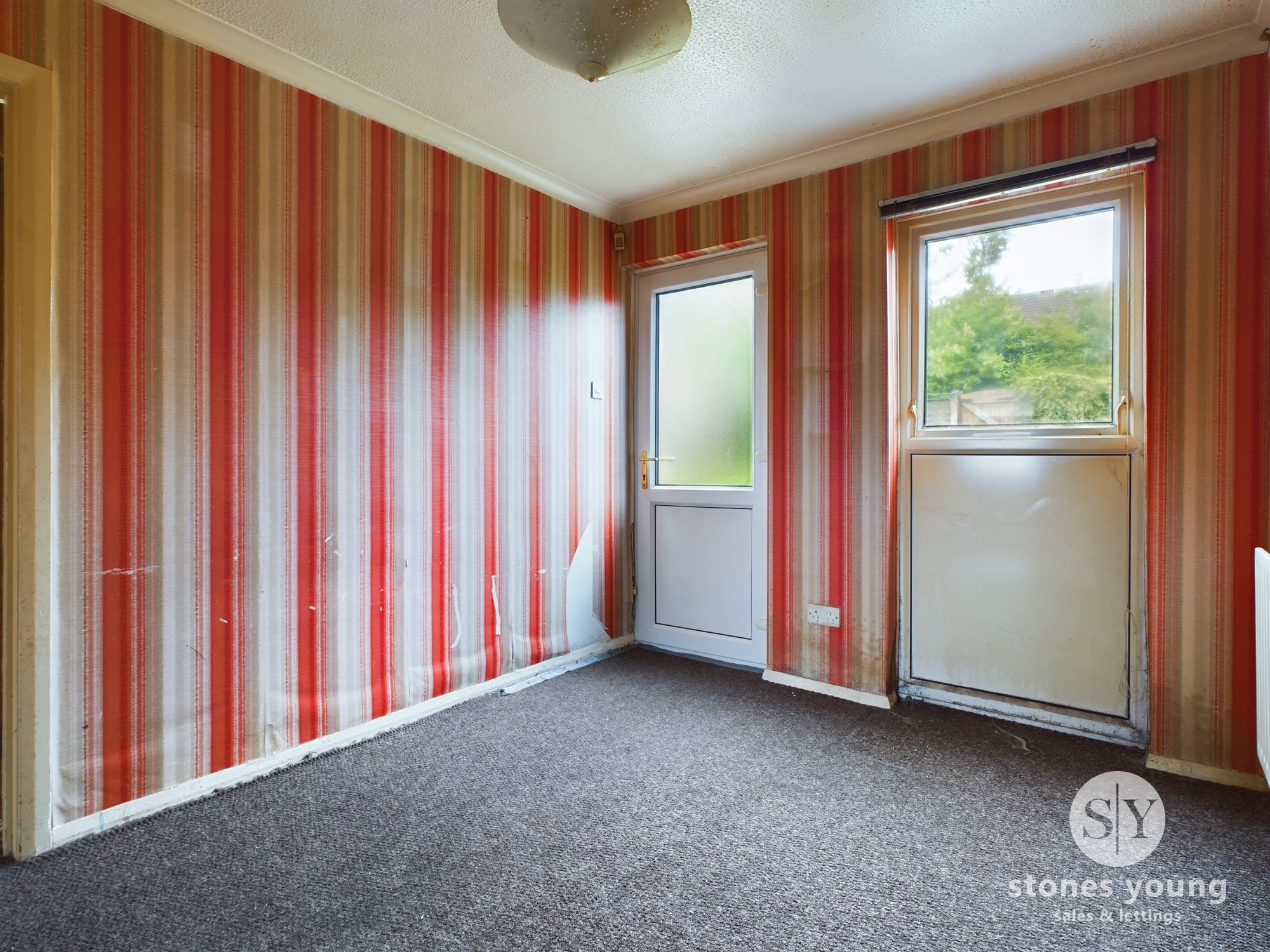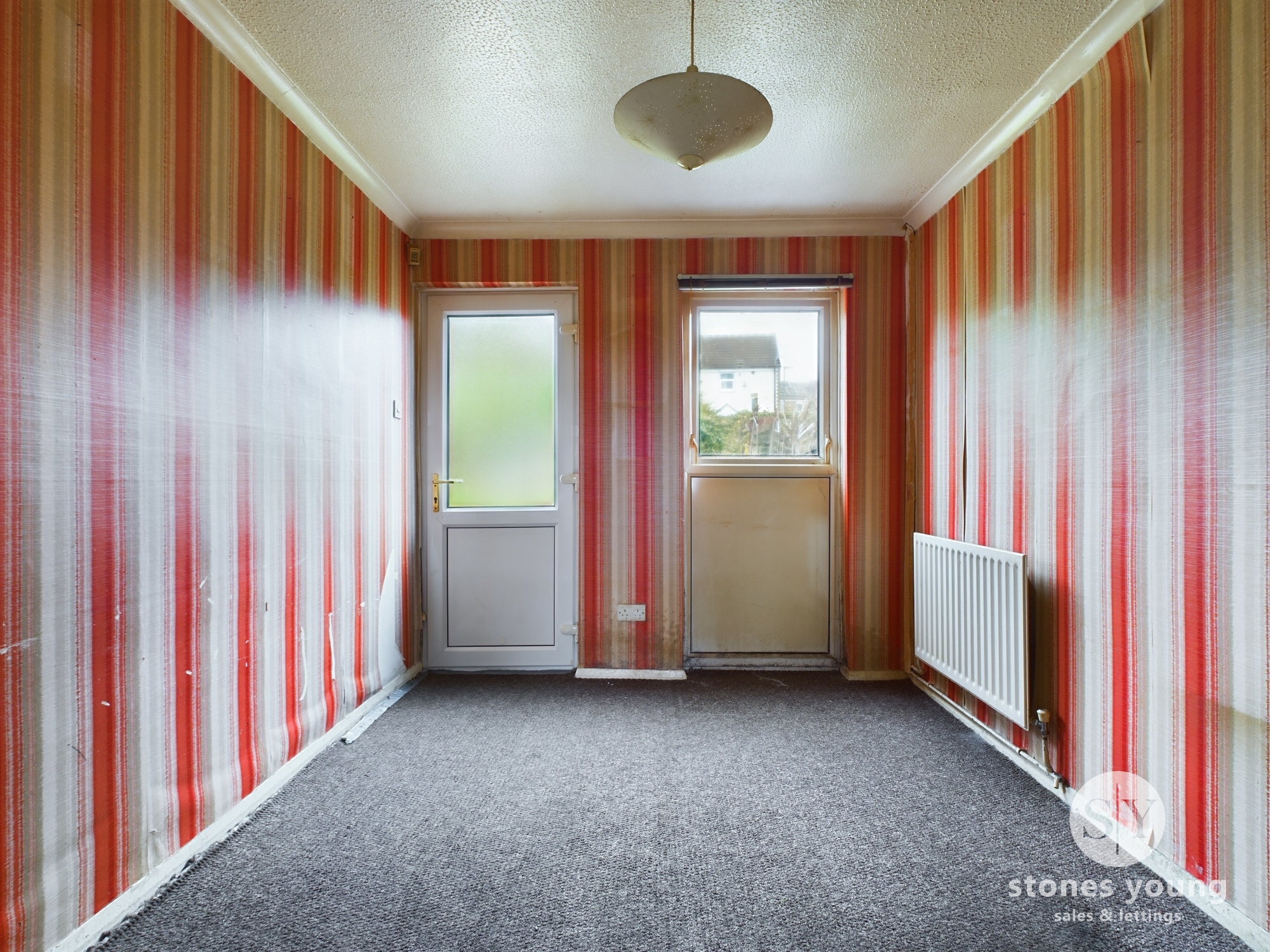 Carpet flooring, ceiling coving, uPVC double glazed door and window, panel radiator.