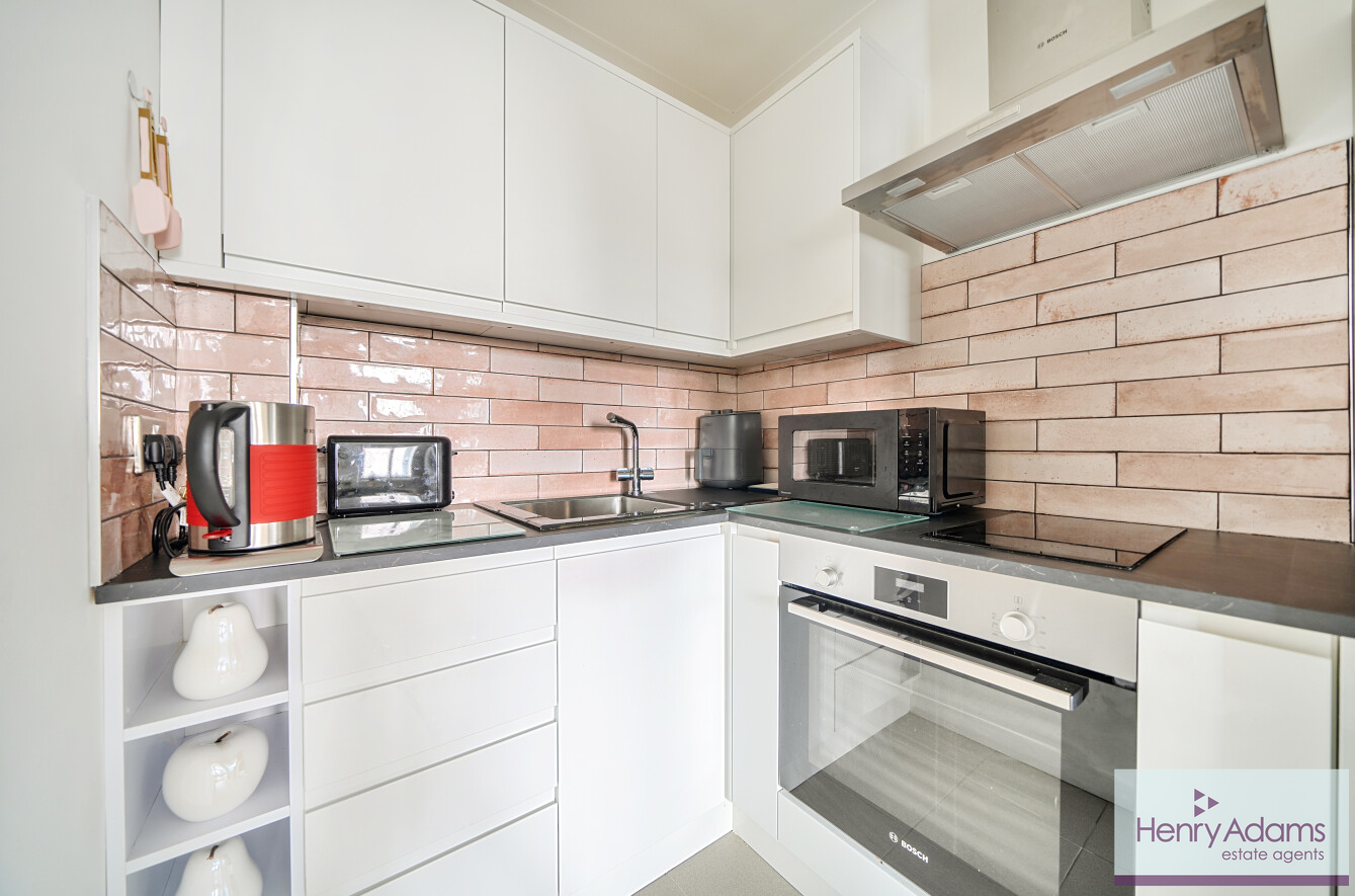 The flat features a spacious and light-filled lounge, perfect for relaxing or entertaining, with an adjacent modern fitted kitchen equipped with contemporary units. The bedroom is generous in size, providing a tranquil retreat, while the bathroom has been thoughtfully updated with sleek fixtures and a clean, contemporary finish.