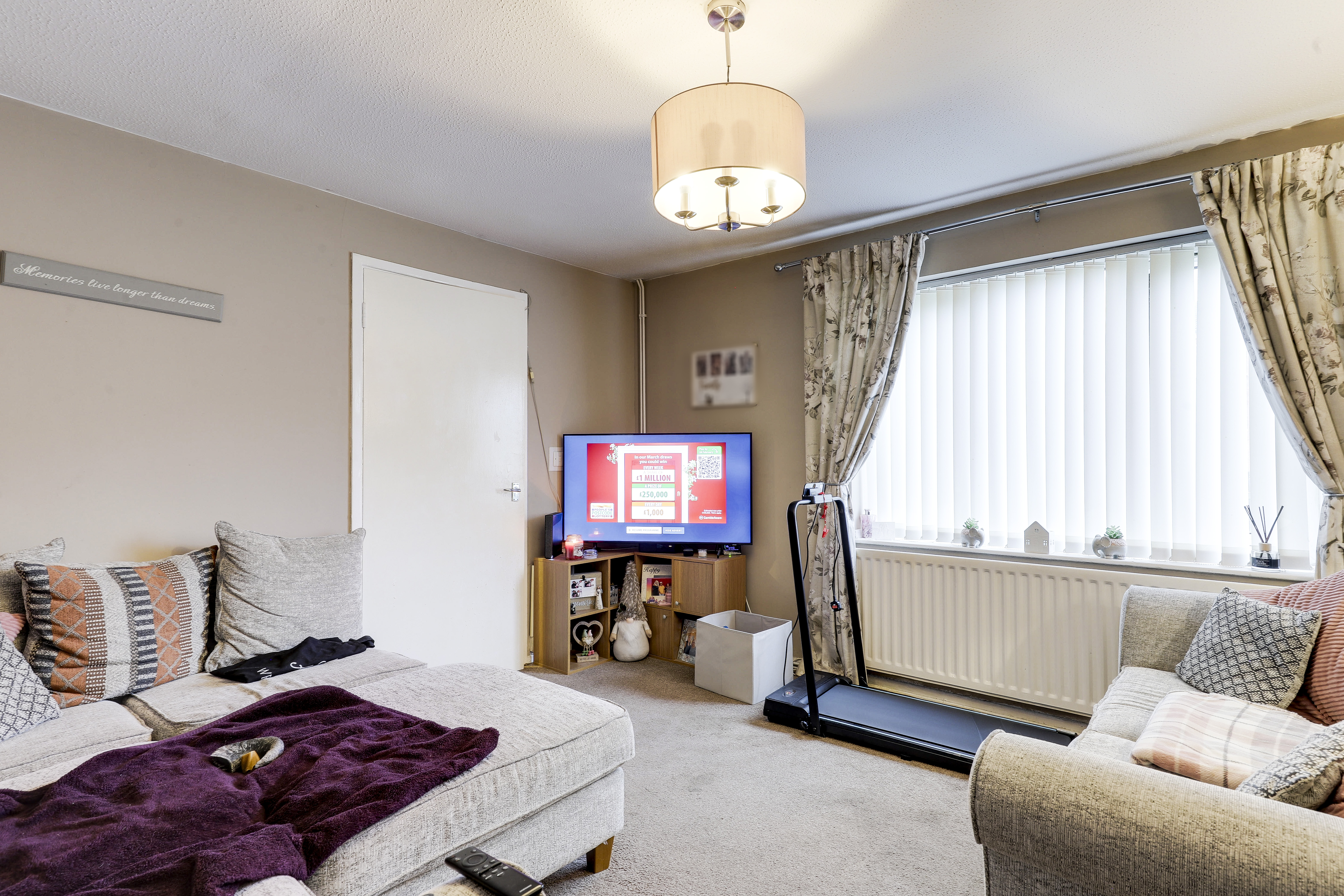 The living room has carpeted flooring, a radiator and a UPVC double-glazed window to the front elevation.