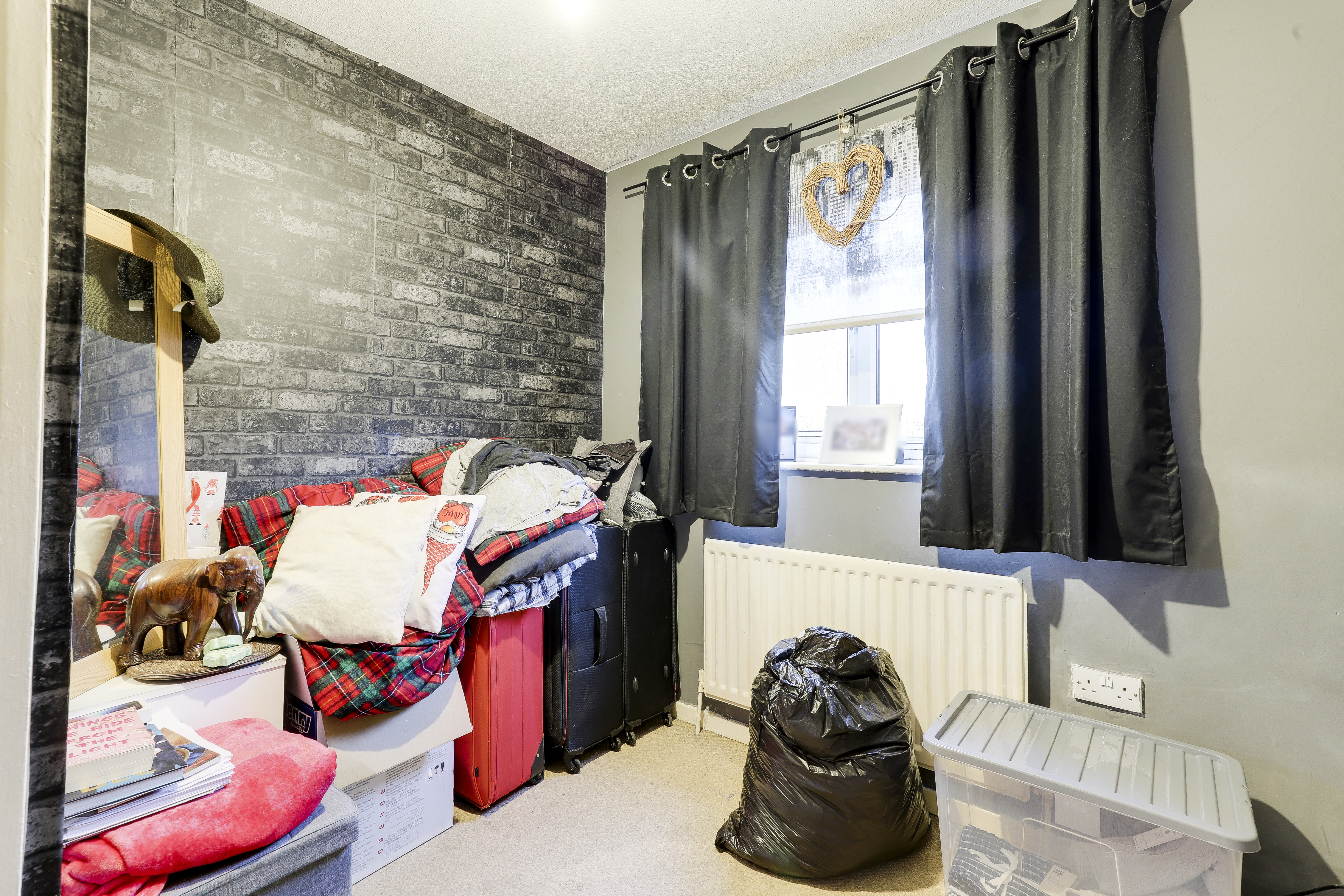 The main bedroom has carpeted flooring, a radiator and a UPVC double-glazed window to the front elevation.