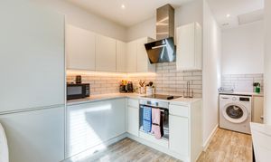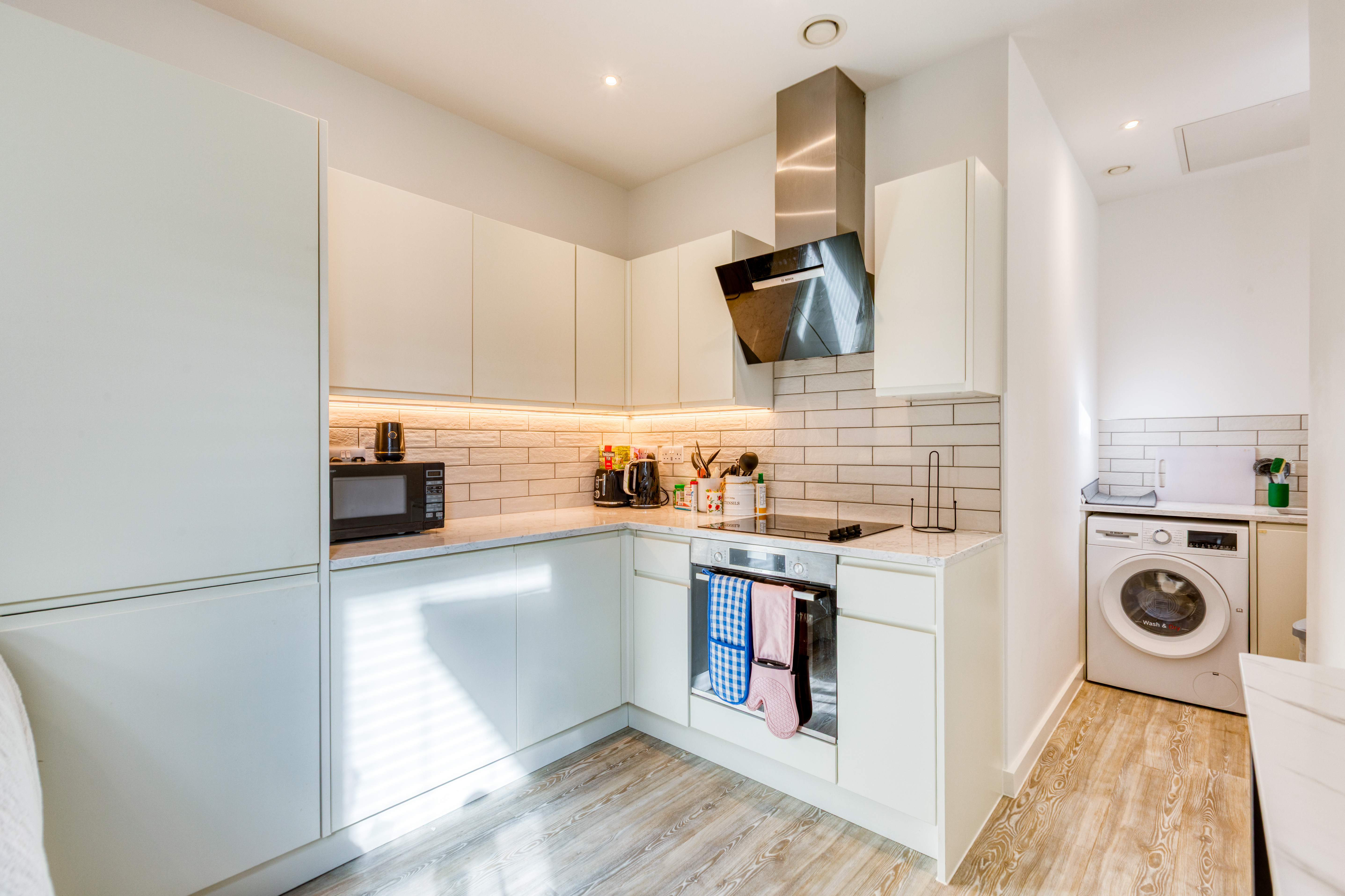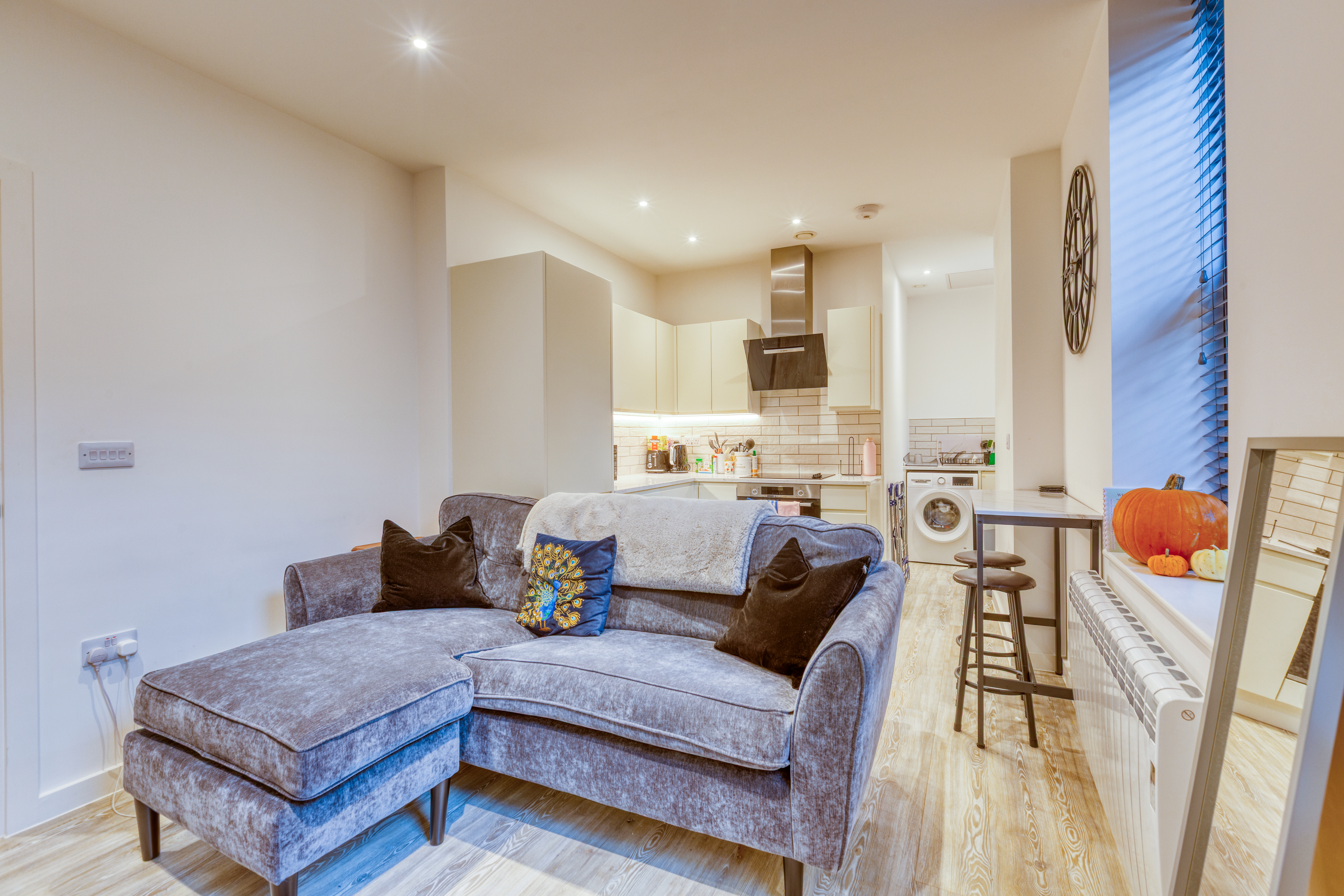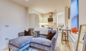 Step into modern comfort with this stylish 1-bedroom apartment, perfect for those looking to jump on the property ladder. Built in 2022 and boasting high-quality appliances, this home is designed with your convenience in mind. The open plan living space has a welcoming ambience to relax and entertain having enough space for a small table and chairs. The large bedroom which has an ensuite shower room plus there is also separate guest WC providing practicality for every-day living.