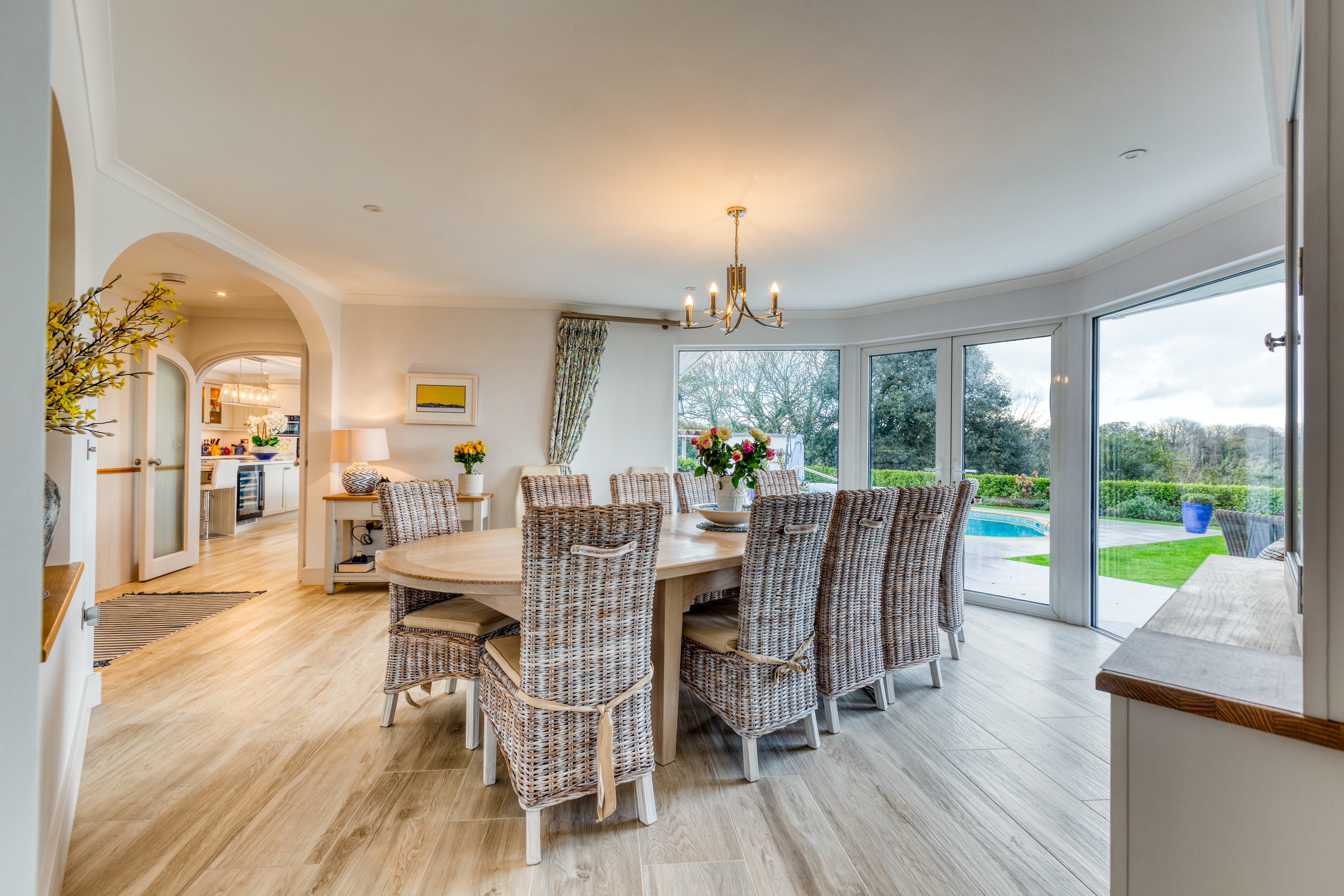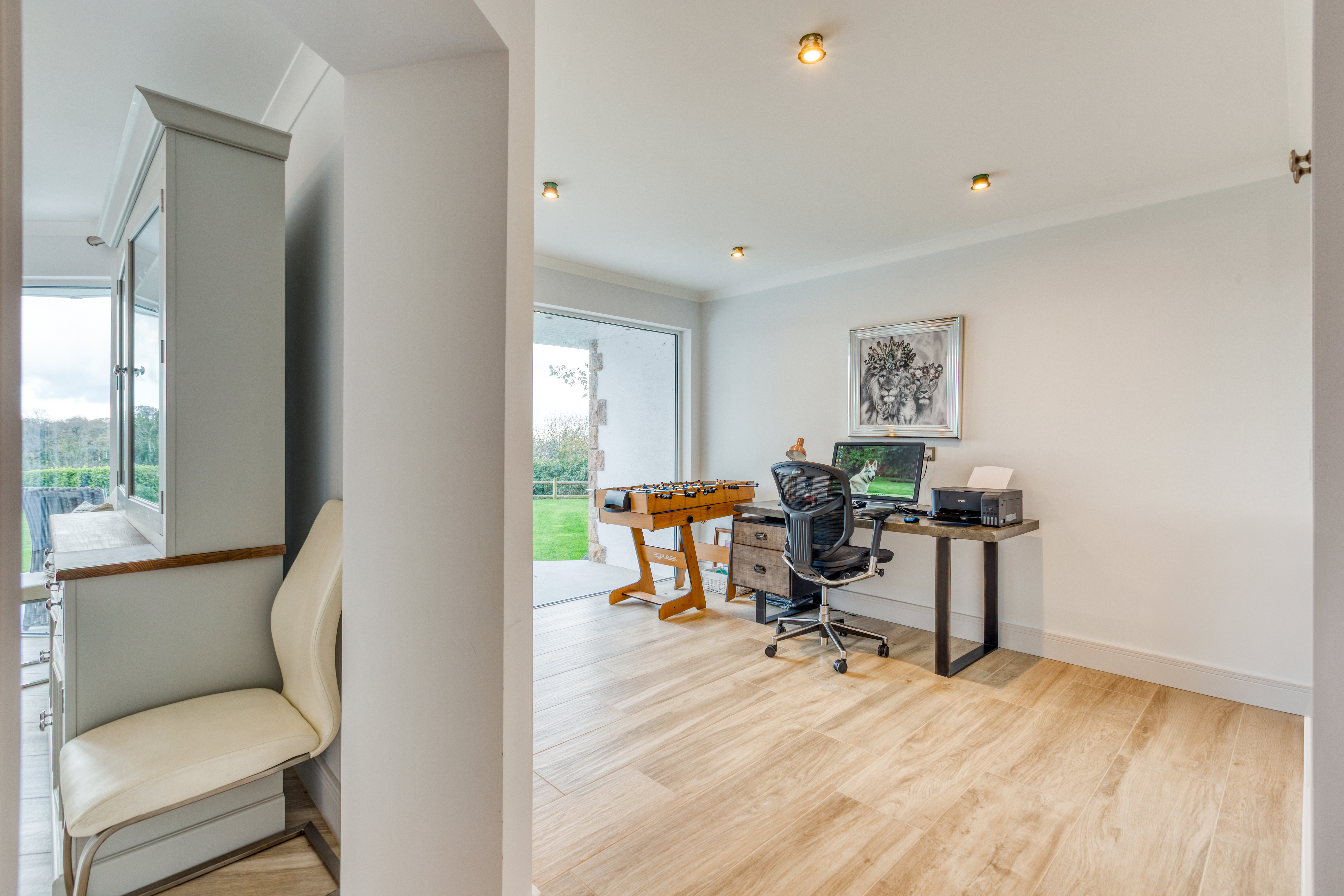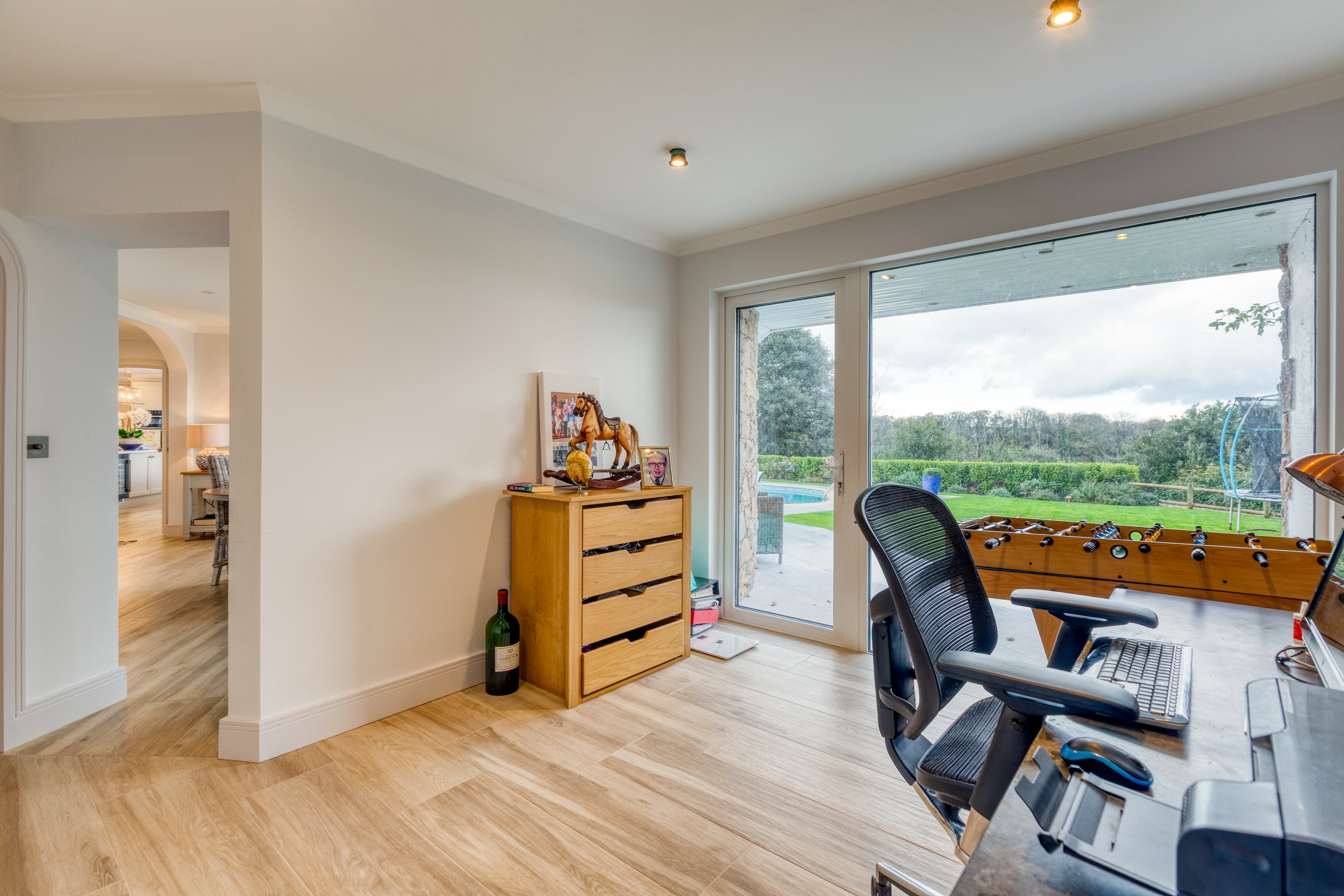 The beautifully manicured garden is a standout feature, complete with a heated swimming pool, generous lawned areas and attractive planting that creates a peaceful and private outdoor environment. Whether hosting summer events or enjoying quiet moments outside, the setting is perfectly tailored for year-round enjoyment.