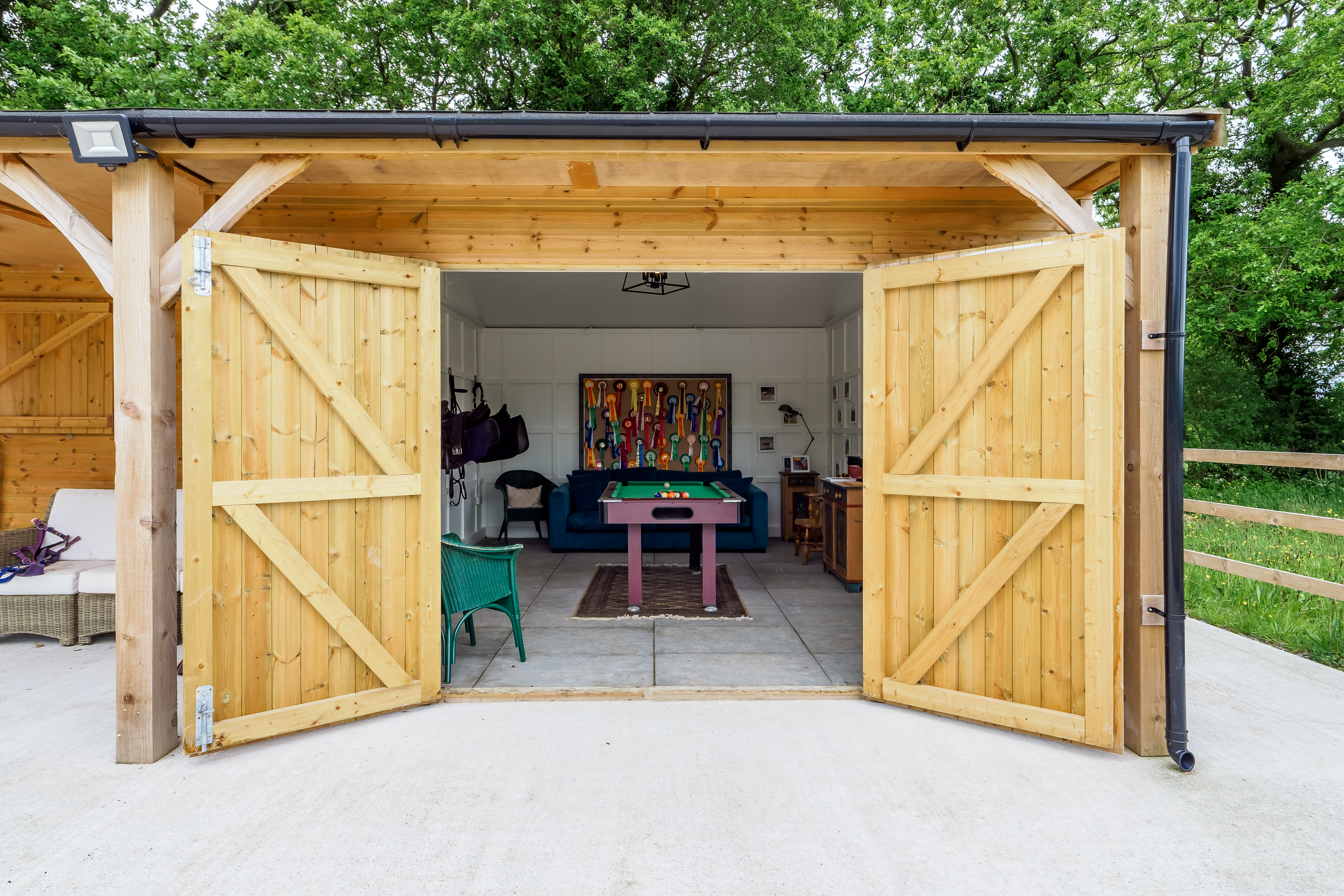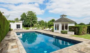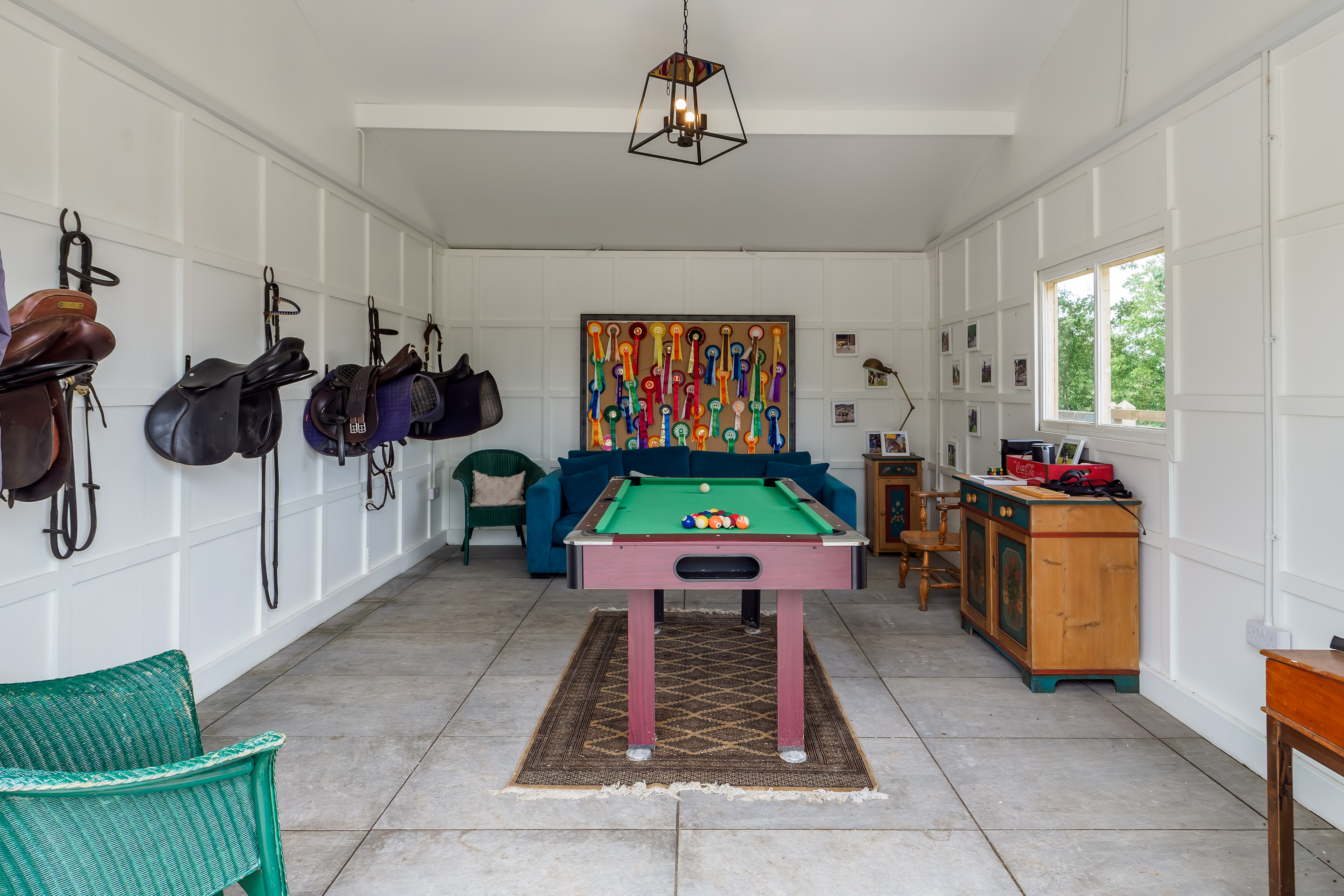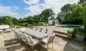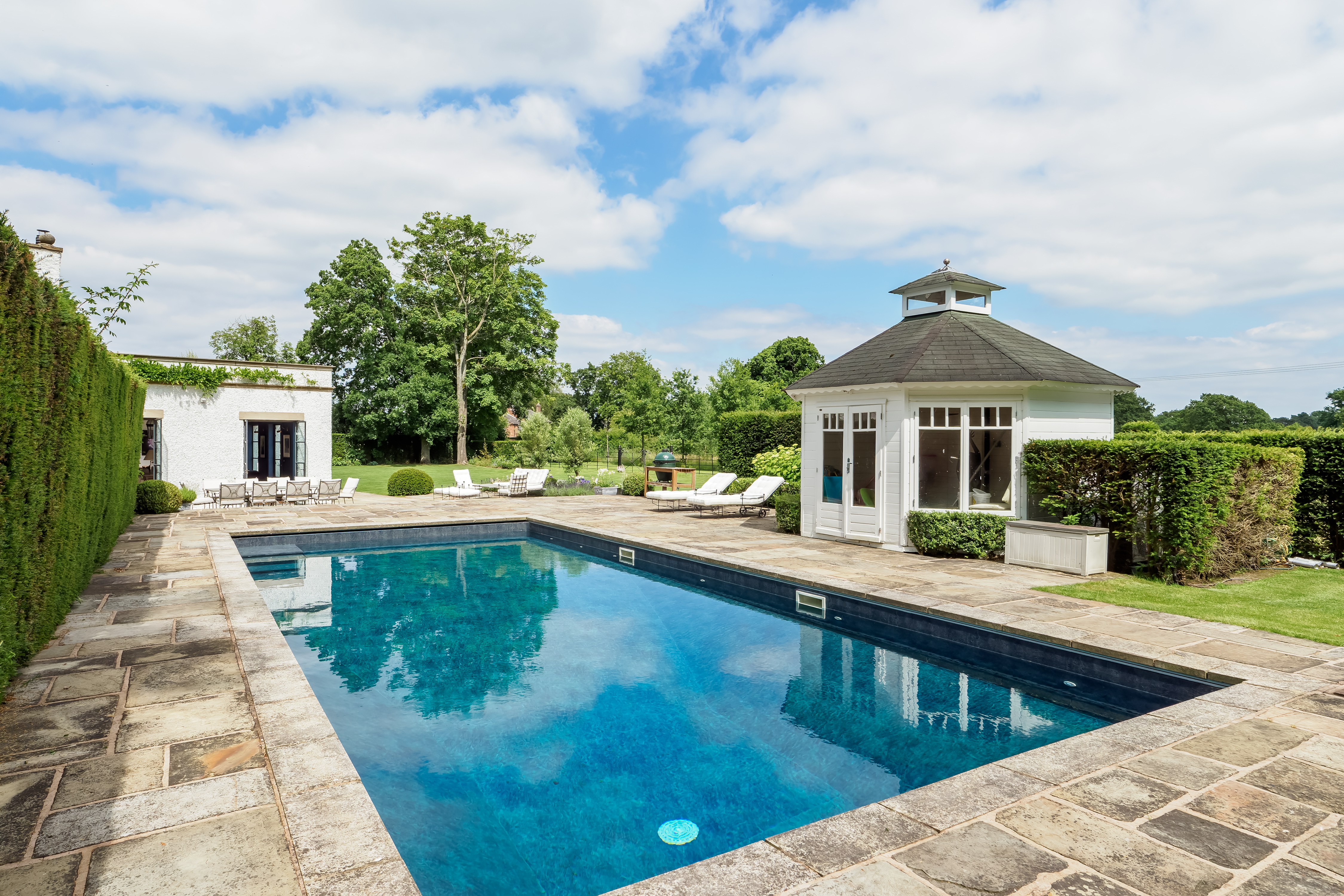 The house has two sets of gates, one central and leading to a huge gravel forecourt and turning area suitable for an extensive number of guests. The gardens immediately surrounding the house are beautifully manicured with topiaried yew hedging, flowers and shrubs and a number of ancient trees. A York stone terrace wraps around the house to the side and rear and runs flush to the interior of the new extension, beyond which is a large pool deck with summer house and an outdoor heated swimming pool run by an air source heat pump and electric cover.