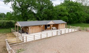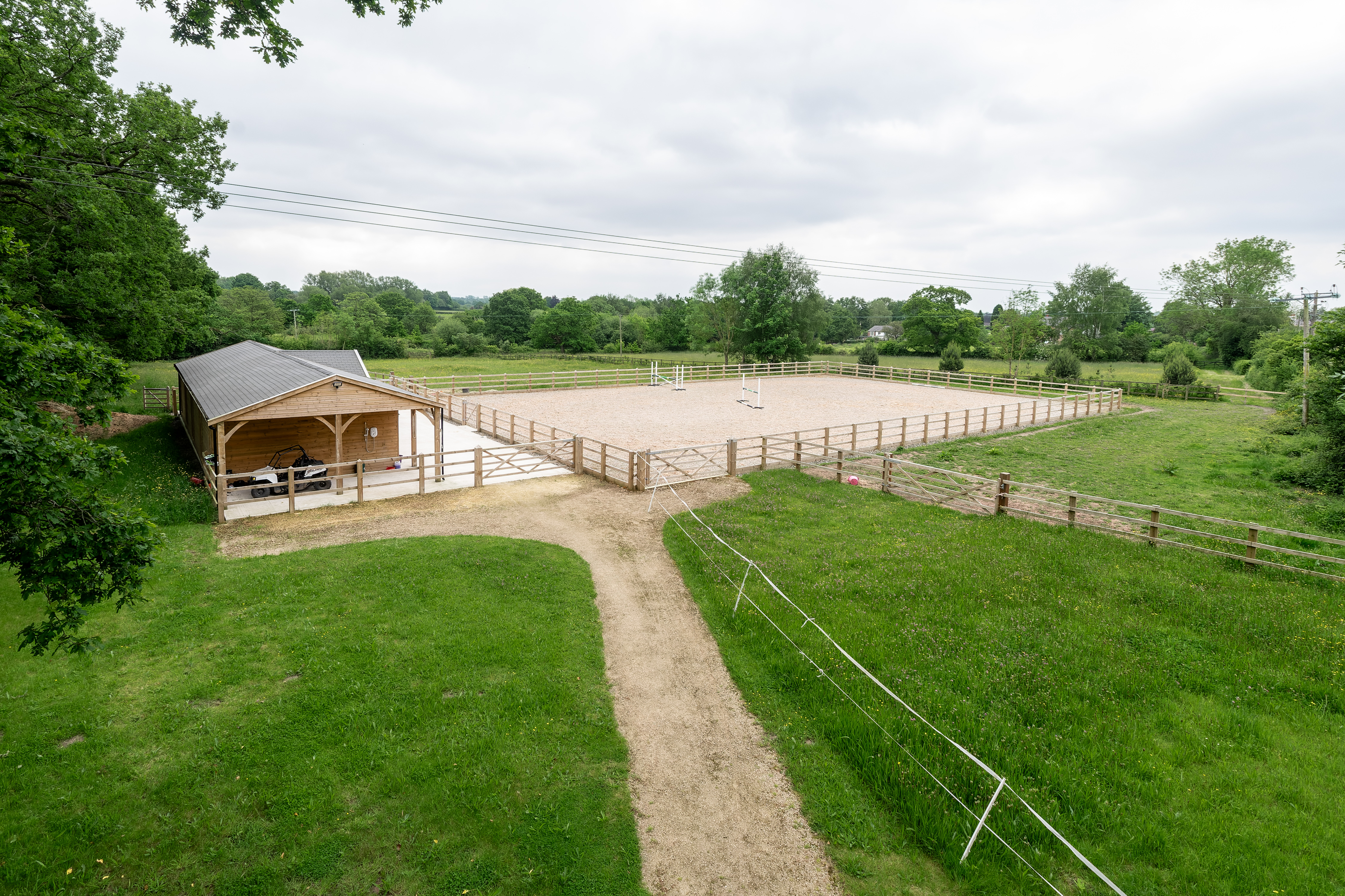 Behind the pool is a grass tennis court used regularly by the owners, and a pathway leads through the gardens to the residue of the land, split in to three good sized paddocks and including an excellent small equestrian facility with concrete forecourt, a range of brand new timber stable buildings and a large fully fenced manege.