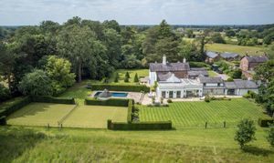 A handsome, historic Grade II Listed country house, beautifully refurbished throughout with exceptional quality, standing in a fabulous position within the village Conservation Area in immaculate gardens and grounds, including a grass tennis court, outdoor swimming pool, superb equestrian facilities, with manège and stables, in all about 6.5 acres.
