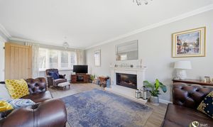 Inside, the accommodation is both spacious and well balanced. A welcoming entrance hall leads to a substantial living room, beautifully bright with excellent natural light flow and centred around a charming fireplace, creating a warm and inviting focal point. To the rear, the modern dining kitchen offers excellent space for everyday living and entertaining, with direct access out to the rear garden. A convenient downstairs WC completes the ground floor.