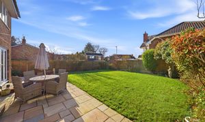 The property benefits from a large driveway providing ample off-road parking, along with well-proportioned gardens that wrap around the house — perfect for families and outdoor entertaining.