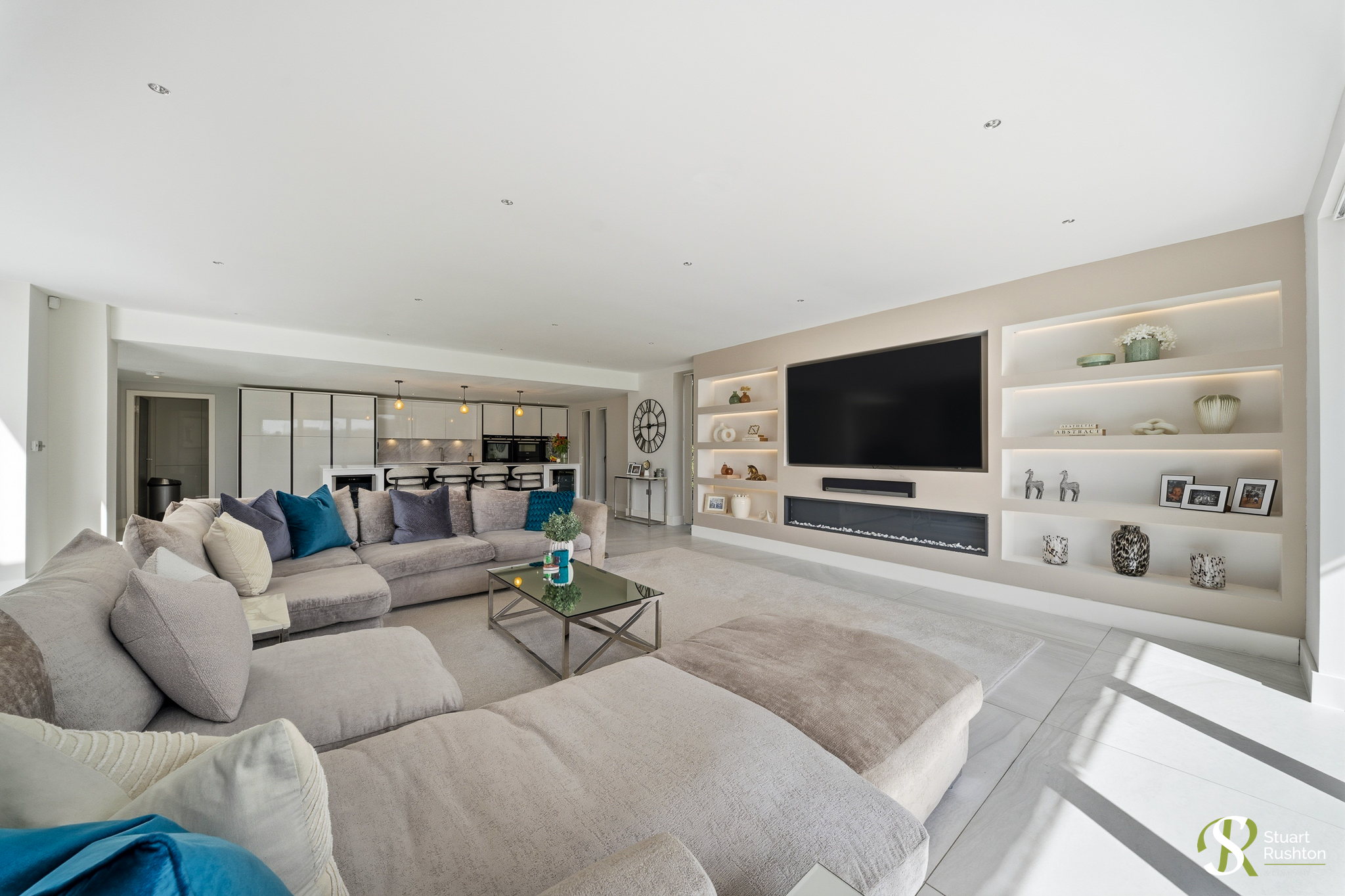 Situated on one of the towns most sought after roads within superb south facing half acre gardens, a high specification, totally remodelled contemporary detached house with over 5000 square feet of balanced family accommodation.