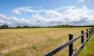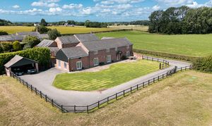 Positioned in the corner of the plot, the property enjoys a high degree of privacy with pleasant, well-maintained formal gardens to the front and a secluded, courtyard-style garden to the rear. Beyond the immediate gardens, the remaining land stretches outwards, providing open views and offering a rare opportunity for use as a small equestrian facility or similar due to its layout and size.