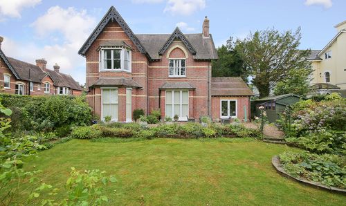 The property boasts both front and rear gardens. The attractive and beautifully maintained large rear garden is south-facing with a patio for outside dining, a large lawn and a wood-chipped play area. The view is luscious and green, with well-established bushes and trees.