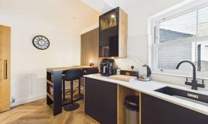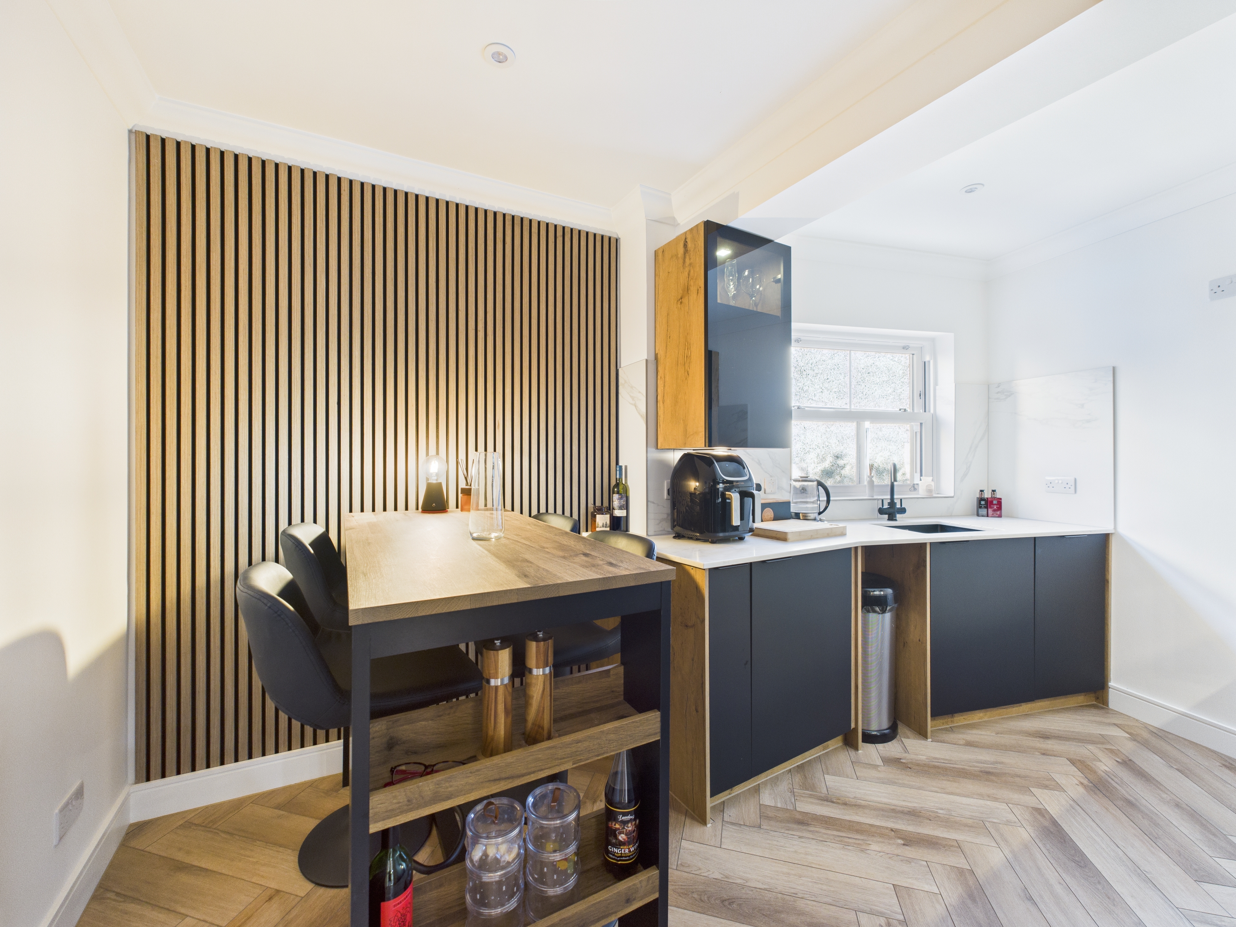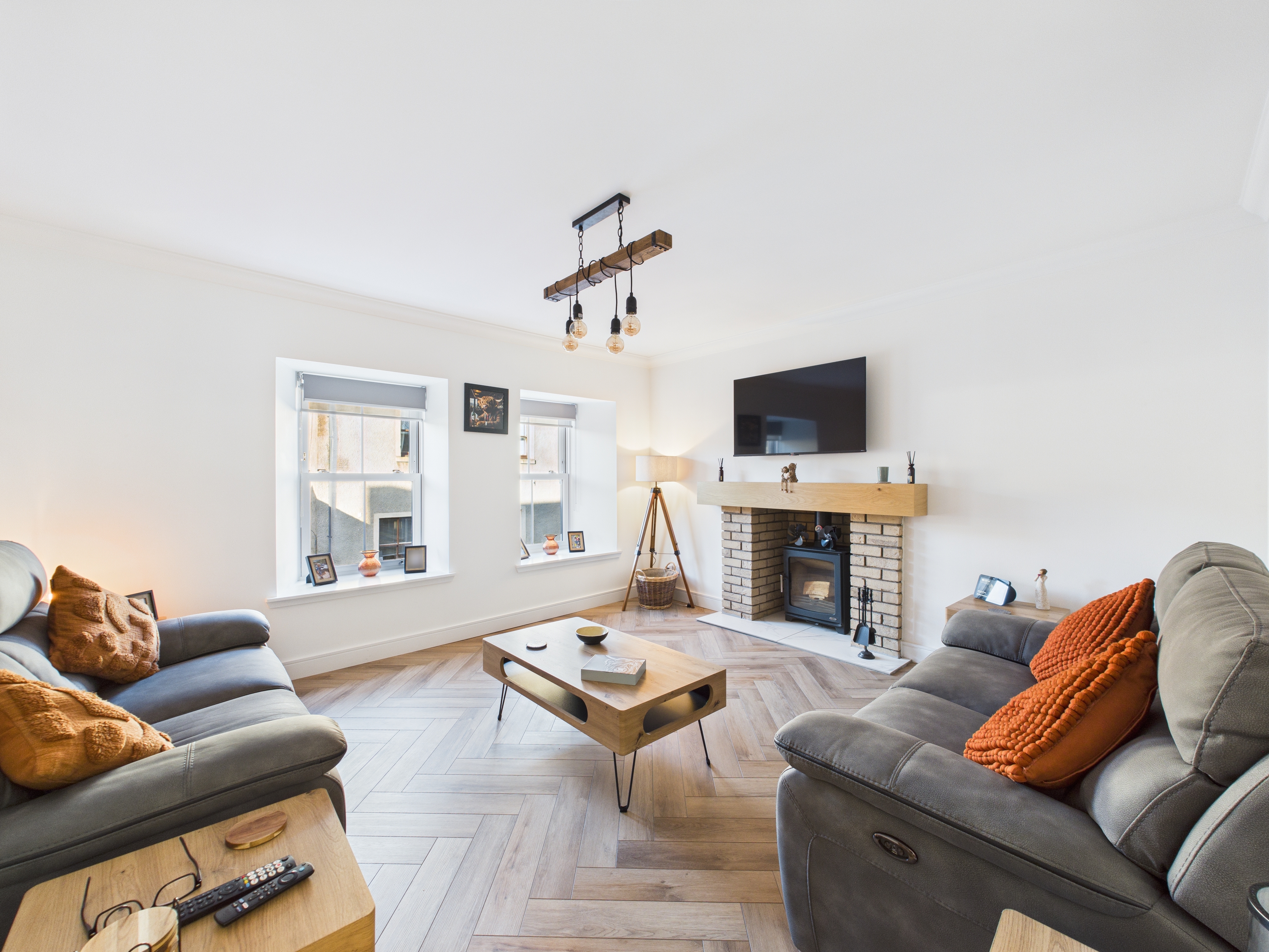 The property is accessed via a shared communal entrance with stairs leading to the private main door entrance. The quality of finish is immediately apparent upon entering the home into the large and welcoming entrance hallway. The lounge is generous in size with twin windows providing excellent natural light and a log burning stove provides an attractive focal point to the room. The kitchen has been fitted to a high specification with quality appliances and units, stylishly designed to maximise on space. The bathroom is again stunningly re-modelled with a suite comprising, W.C, walk-in shower and wash hand basin. The apartment is completed by two double bedrooms.