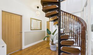 The home is entered from the front into a spacious and welcoming entrance hallway which gives access to the ground floors principal accommodation. The lounge is bright and airy with a log burning stove providing an attractive focal point to the room and adding to the country charm of the property. The kitchen, is again, generous in size with ample base and wall mounted storage and quality appliances. Access can be gained from here to the rear garden. Centrally, to the rear of the spiral staircase is a good size dining room which in turn leads through to the sunroom at the back which offers attractive views over the rear garden. The ground floor is completed by a family bathroom and three double bedrooms.