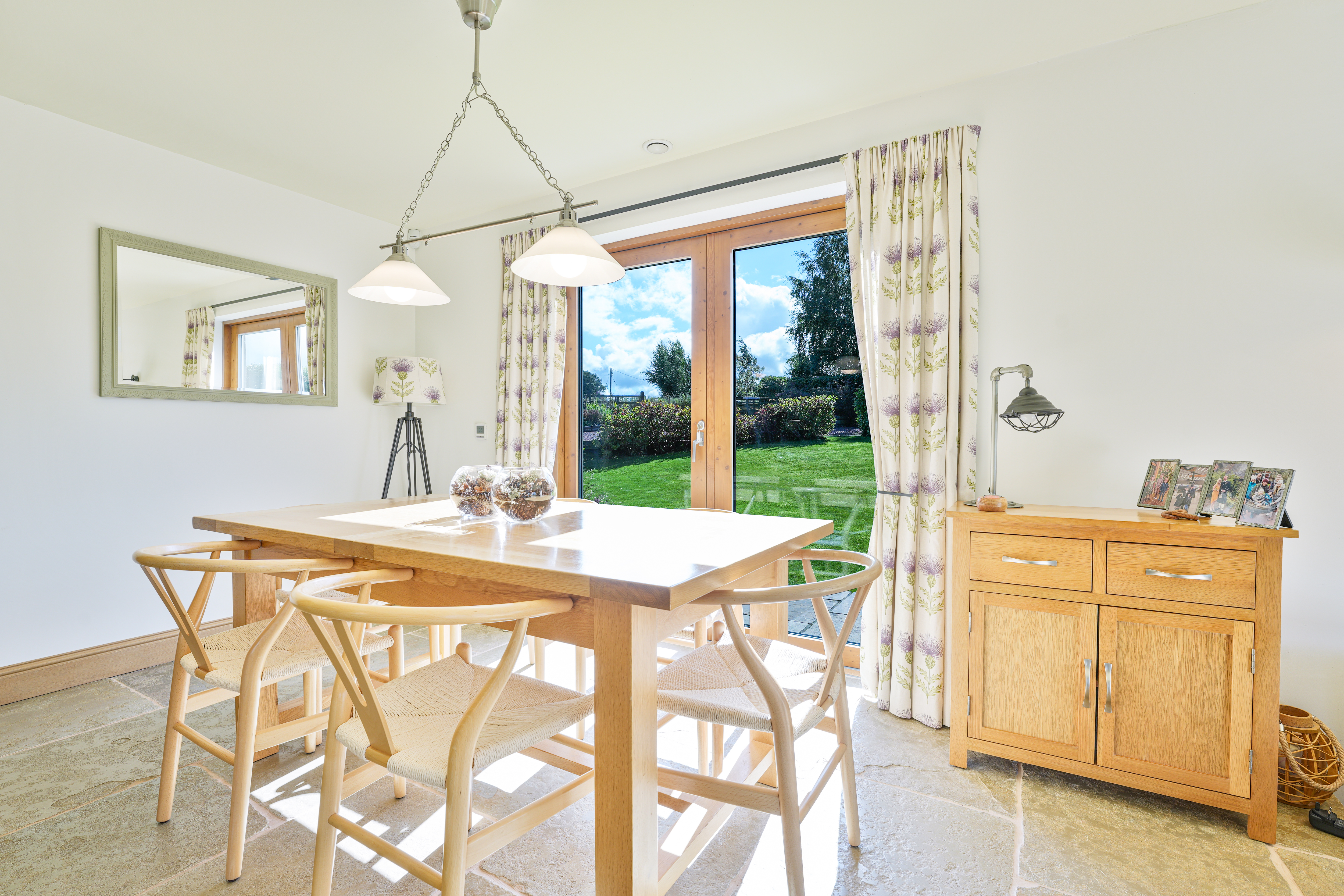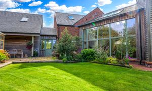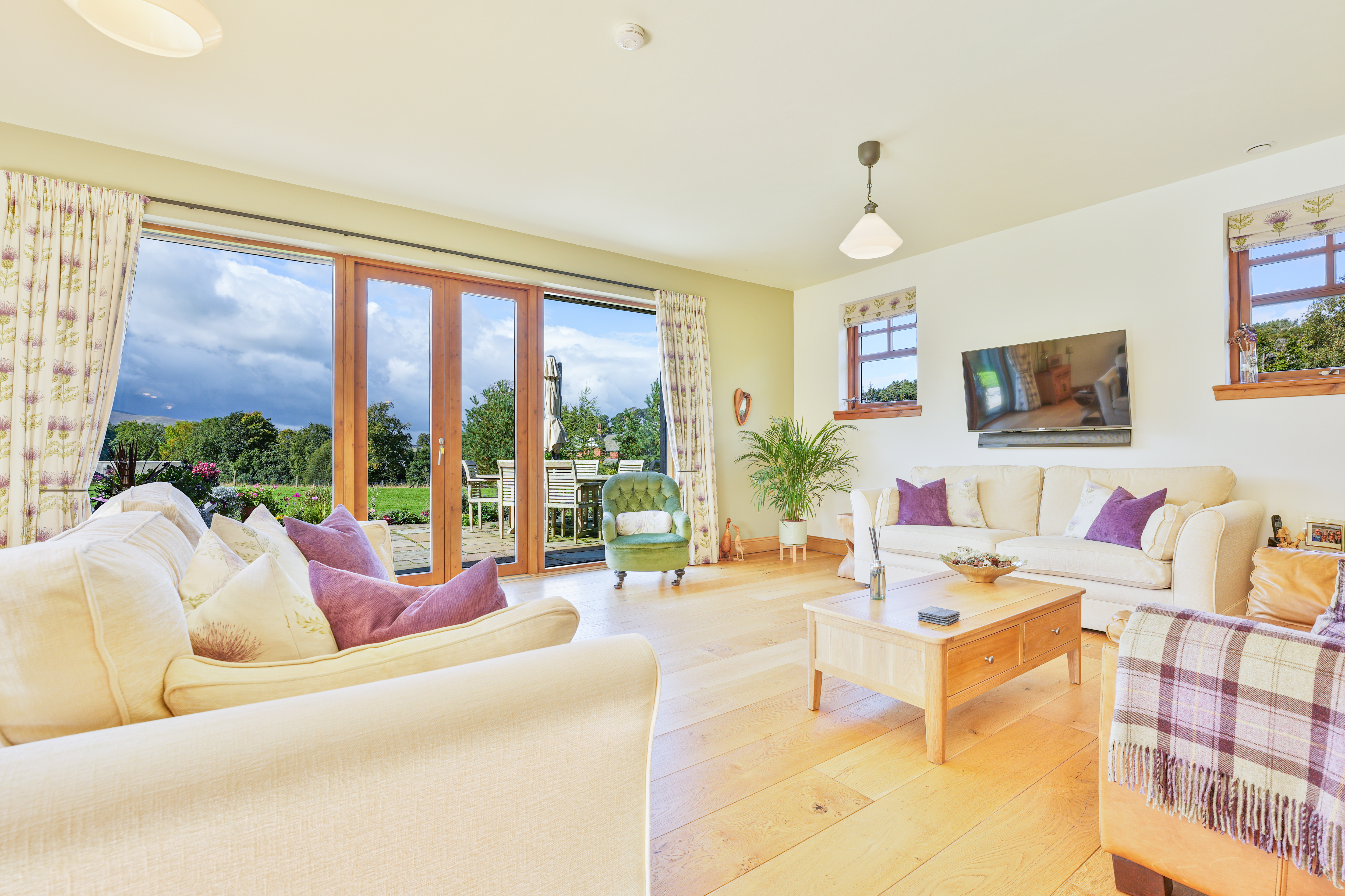 Exterior finished in traditional brick and Siberian larch cladding, perfectly in tune with the countryside.
