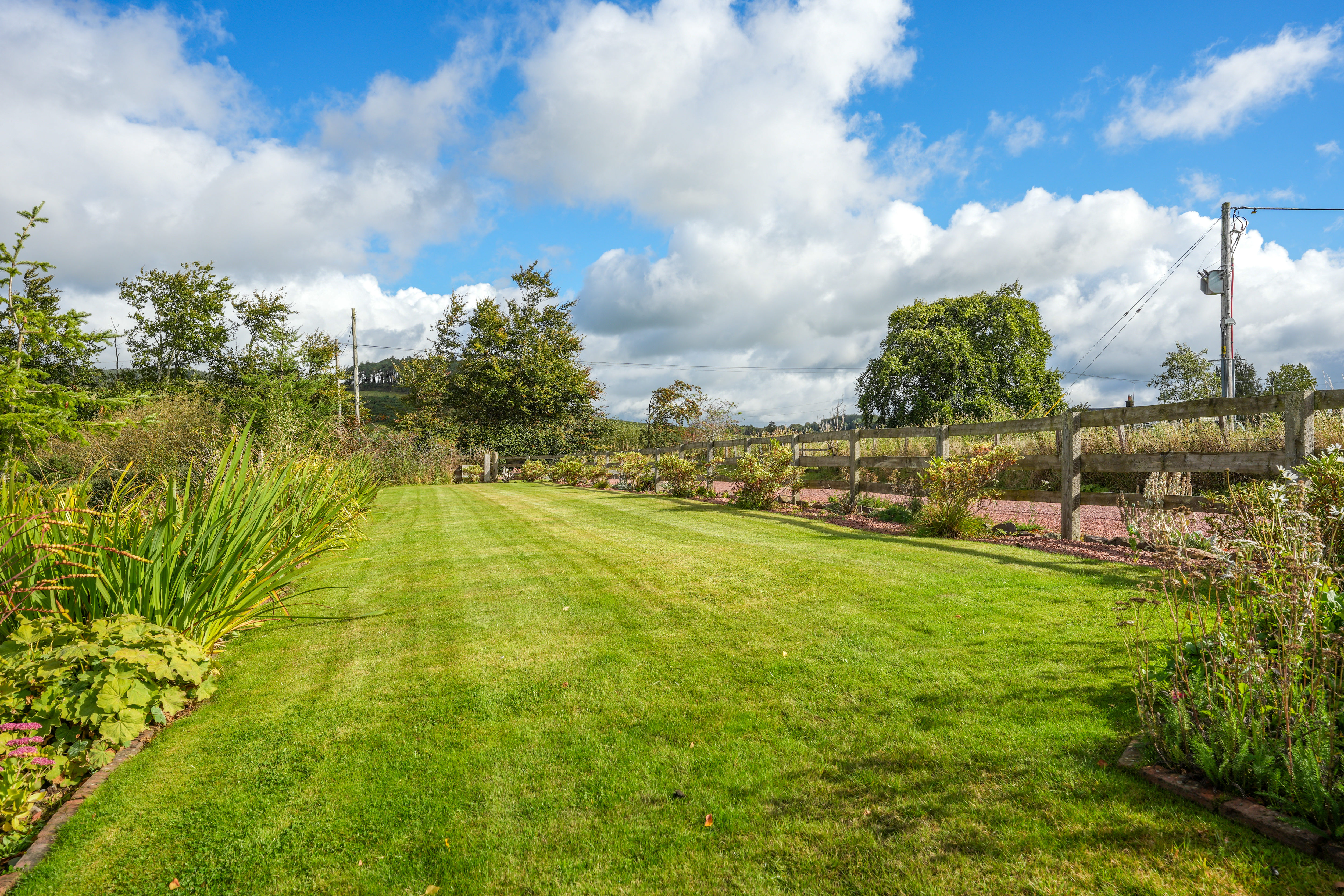 Approximately five acres of paddock, bordered by the Deanburn and divided into two enclosures, currently rented for sheep grazing but offering excellent potential for equestrian use or hobby farming.