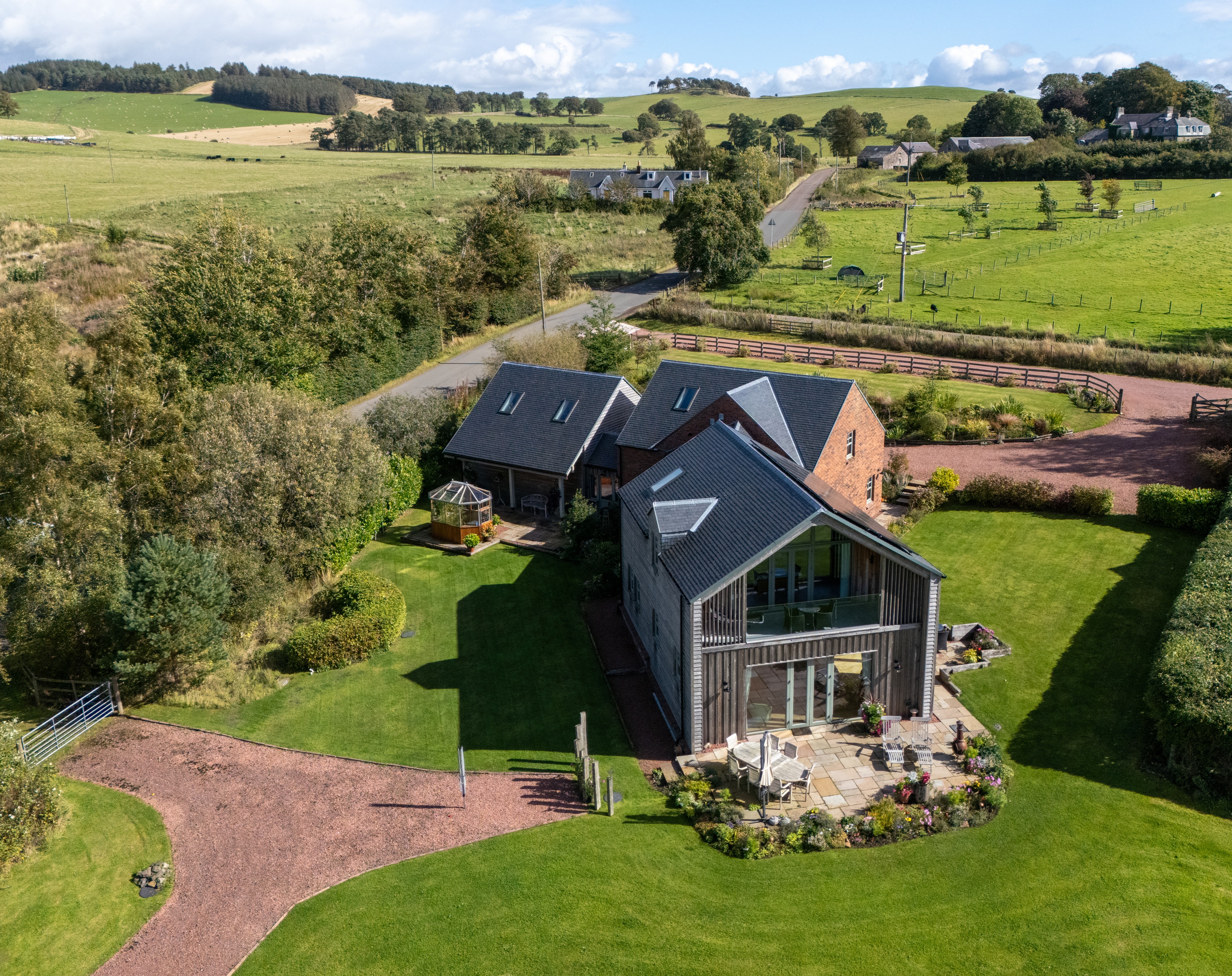 Teinnteach is a rare opportunity: a bespoke, eco-conscious home of outstanding architectural design, set within idyllic Scottish Borders countryside. Its combination of style, sustainability, and space — with the added benefit of a paddock — makes it perfect for those seeking both a luxurious family home and a rural retreat.