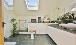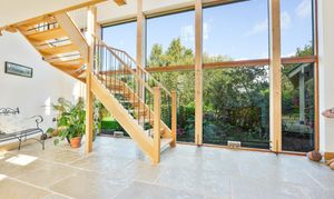 Underfloor heating throughout the ground floor and a mechanical ventilation with heat recovery system.