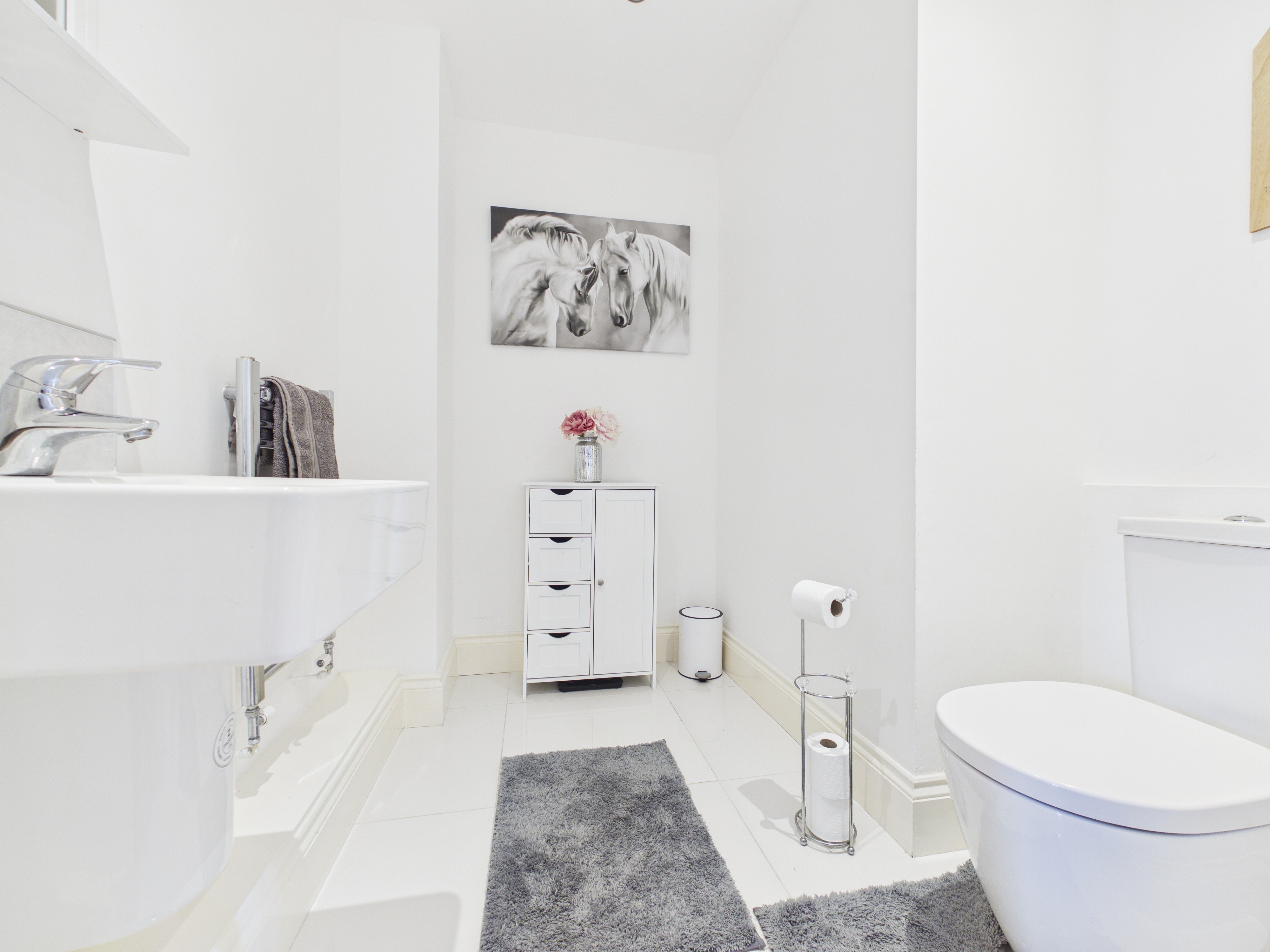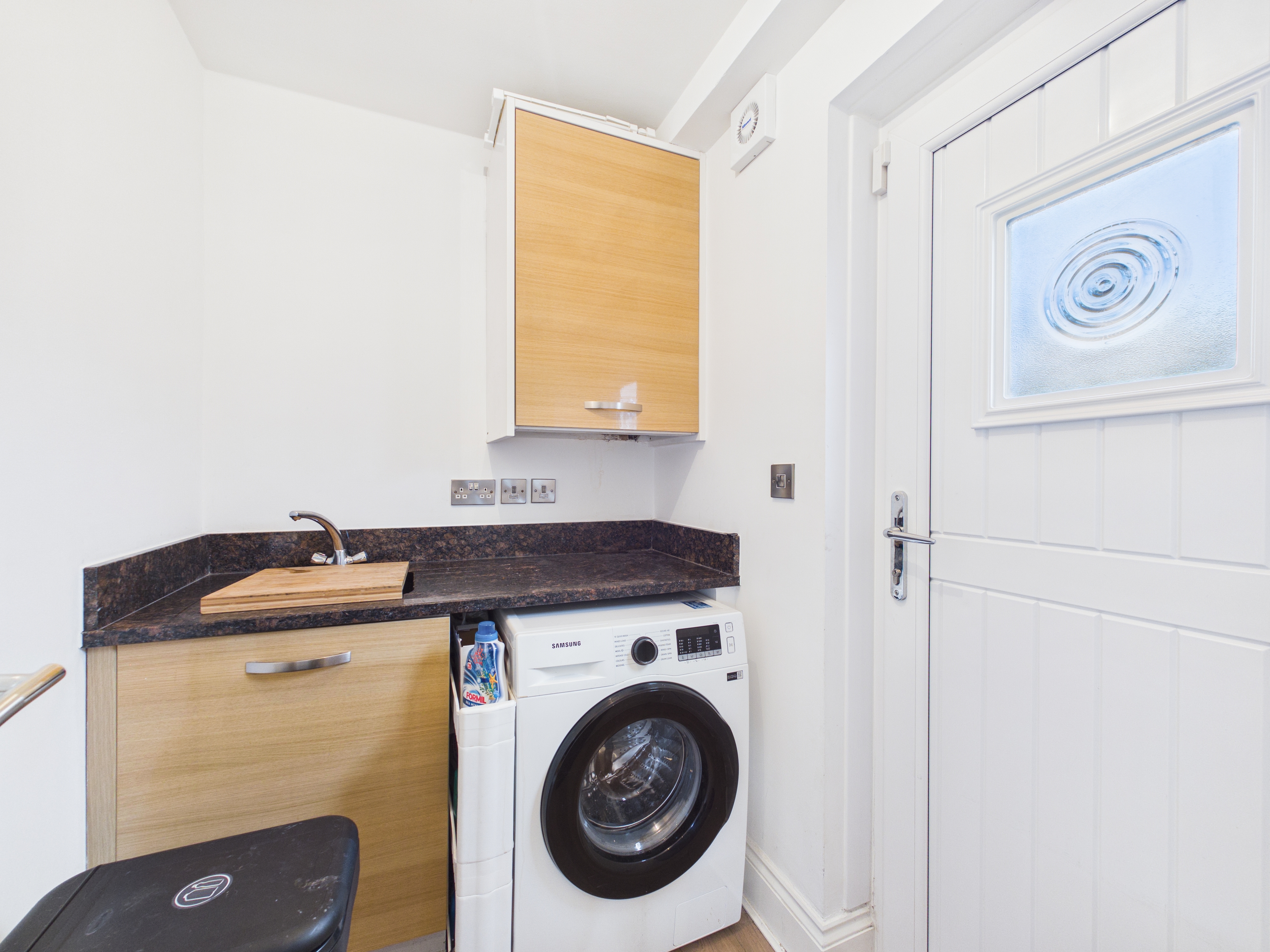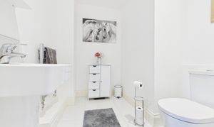 The property is entered from the front into a welcoming entrance hallway. The kitchen is a real feature of this home incorporating the family and breakfasting area with quality appliances, granite worktops and fully tiled floor. Excellent natural light floods the room thanks to a pair of large windows and patio doors which give access to the rear garden. Complimenting the kitchen is a utility room which provides separate laundry facilities, additional storage and a side door access. The lounge is generously proportioned, and the ground floor is completed by a cloaks W.C. and dining room which the current owner utilises as a gym, but it could also be a ground floor double bedroom.