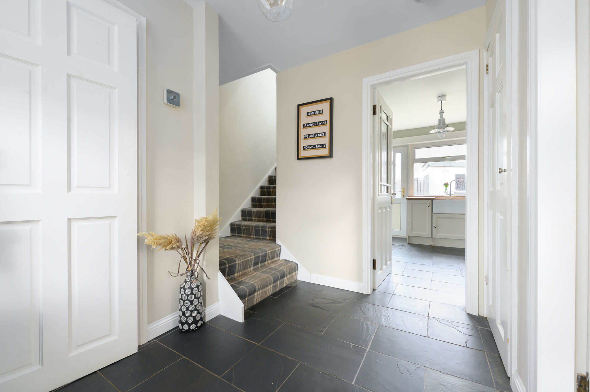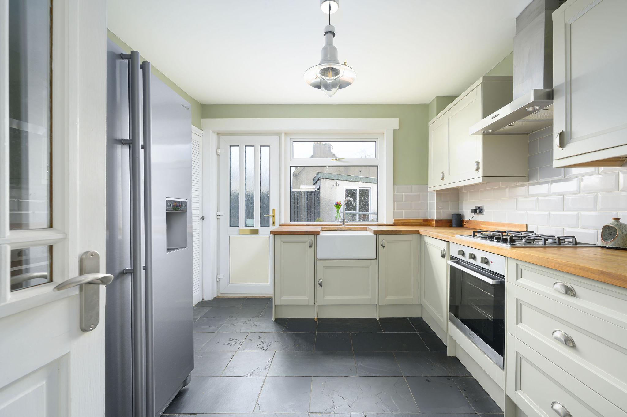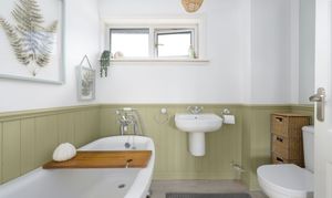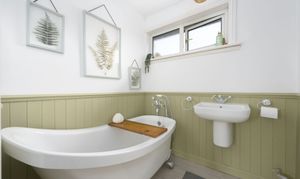 Upstairs, there are three generously sized bedrooms along with a stunning family bathroom featuring a freestanding bath with handheld shower, wash hand basin and WC, finished to a high standard and designed for comfort.