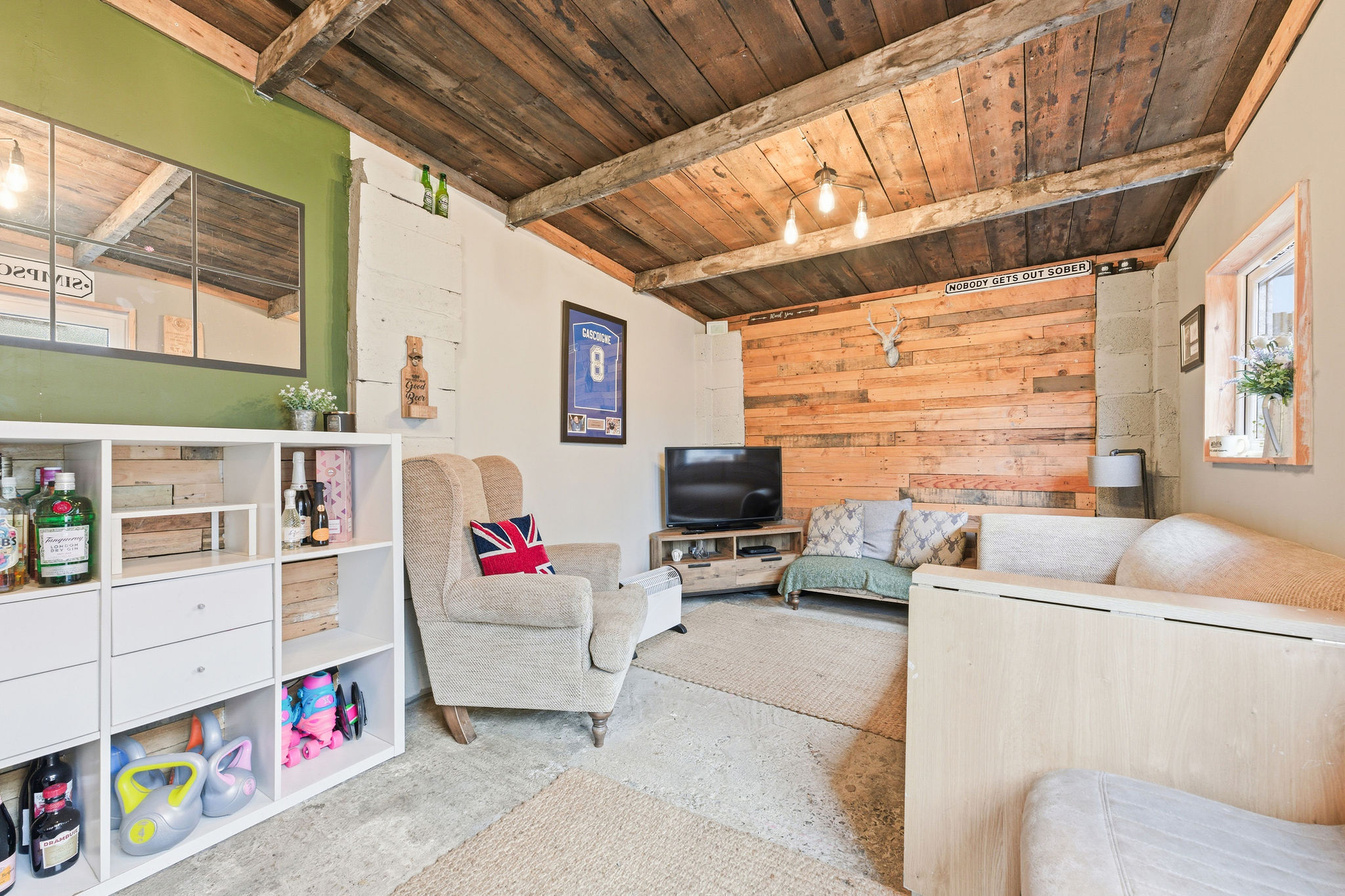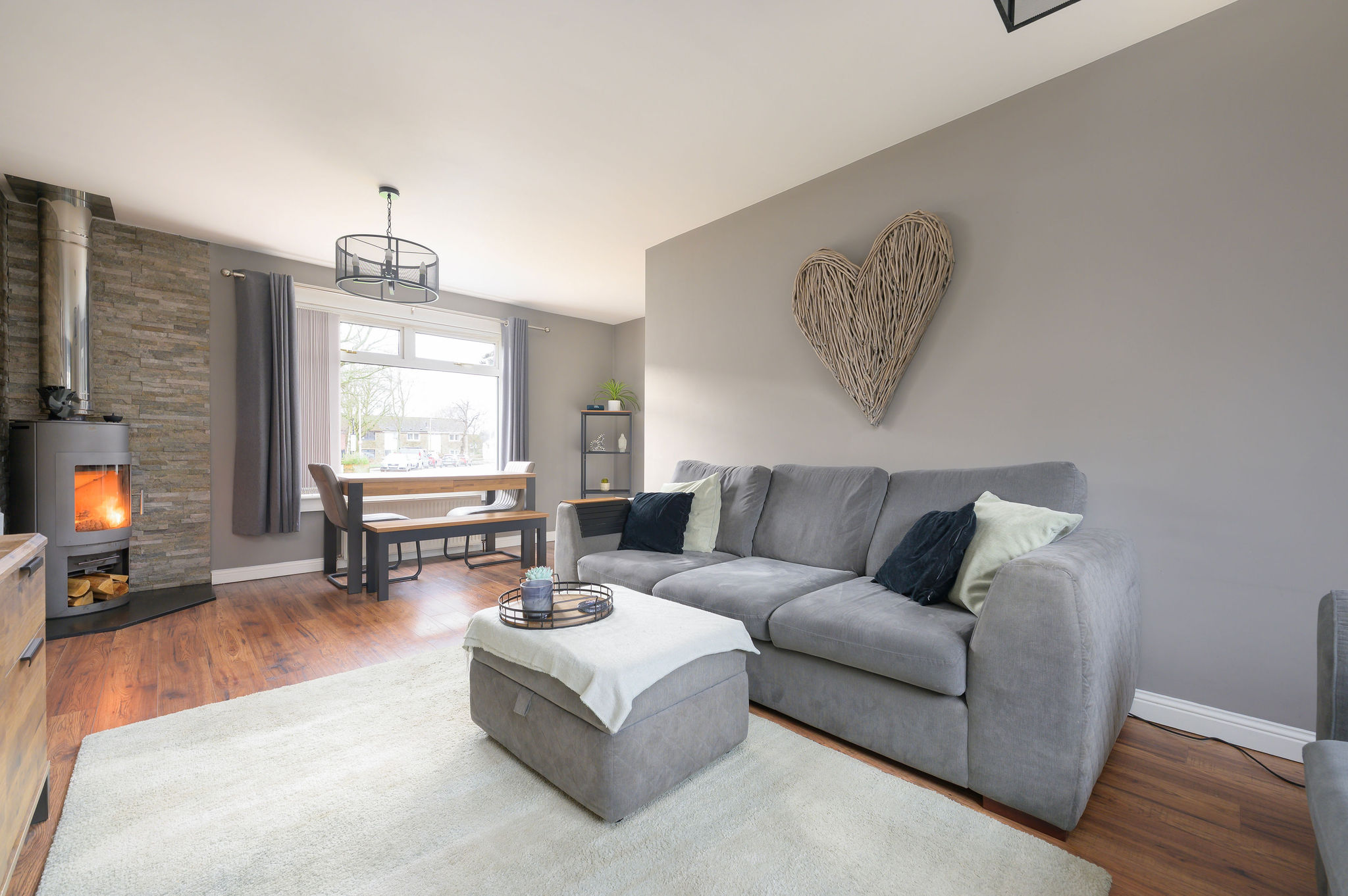 Externally, the enclosed rear garden has been thoughtfully landscaped with paving and artificial lawn for low maintenance living. A real standout feature is the garage which is being utilised as a fantastic den/bar ideal for socialising, movie nights or a home retreat. The property also benefits from off street parking and an electric car charging point, adding modern convenience to this already impressive home.