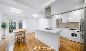 Inside, the property opens into a welcoming and comfortable living room, perfect for relaxing evenings. To the rear, the home really comes into its own with a modern open-plan kitchen diner, creating a sociable space for everyday family life and entertaining and with a central island, French doors leading out to the rear garden as well as Velux windows.