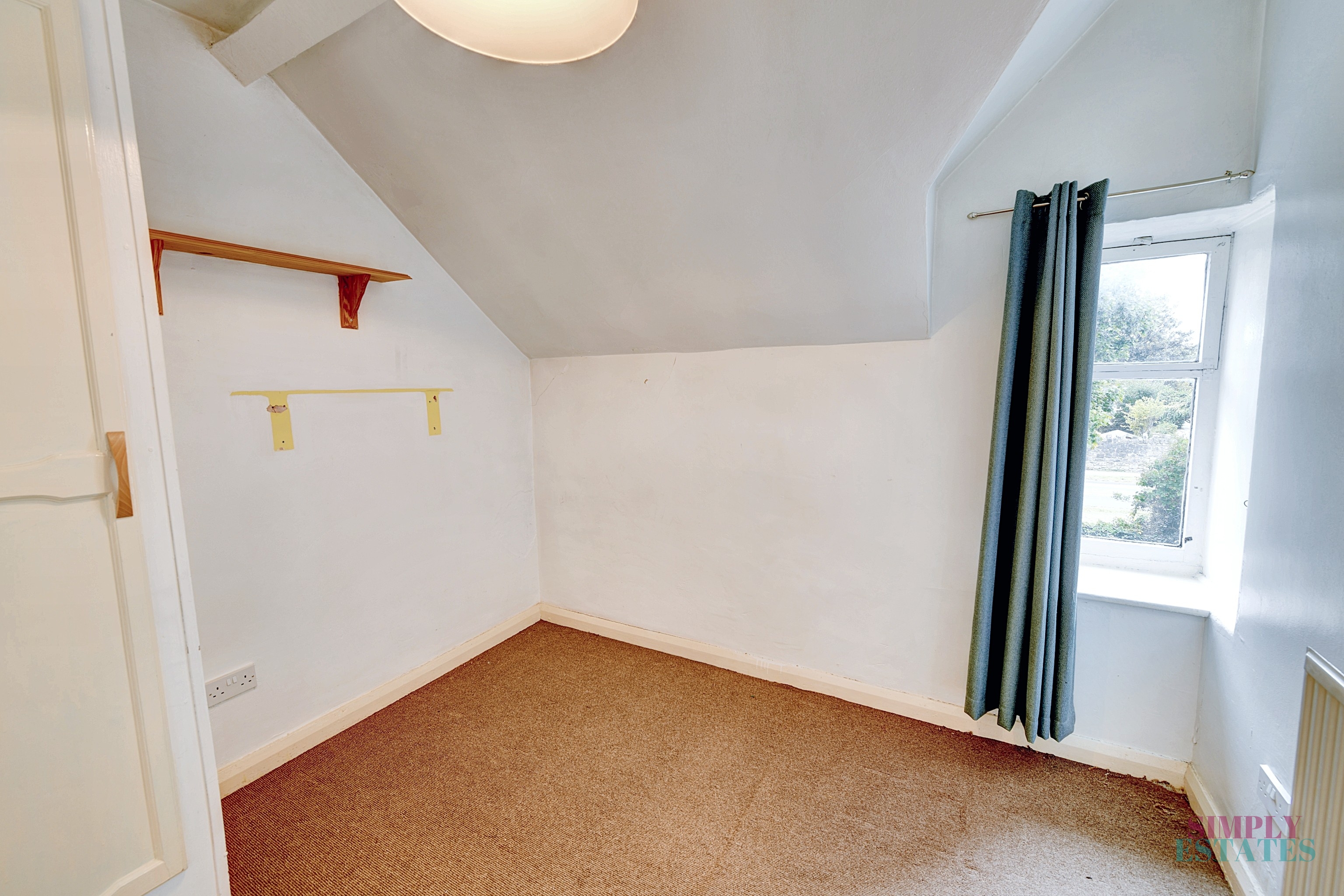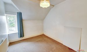 A bright and airy room with sloped ceiling and front-facing window. Offers space for a single bed or small double, ideal as a child’s room, guest space or home office.