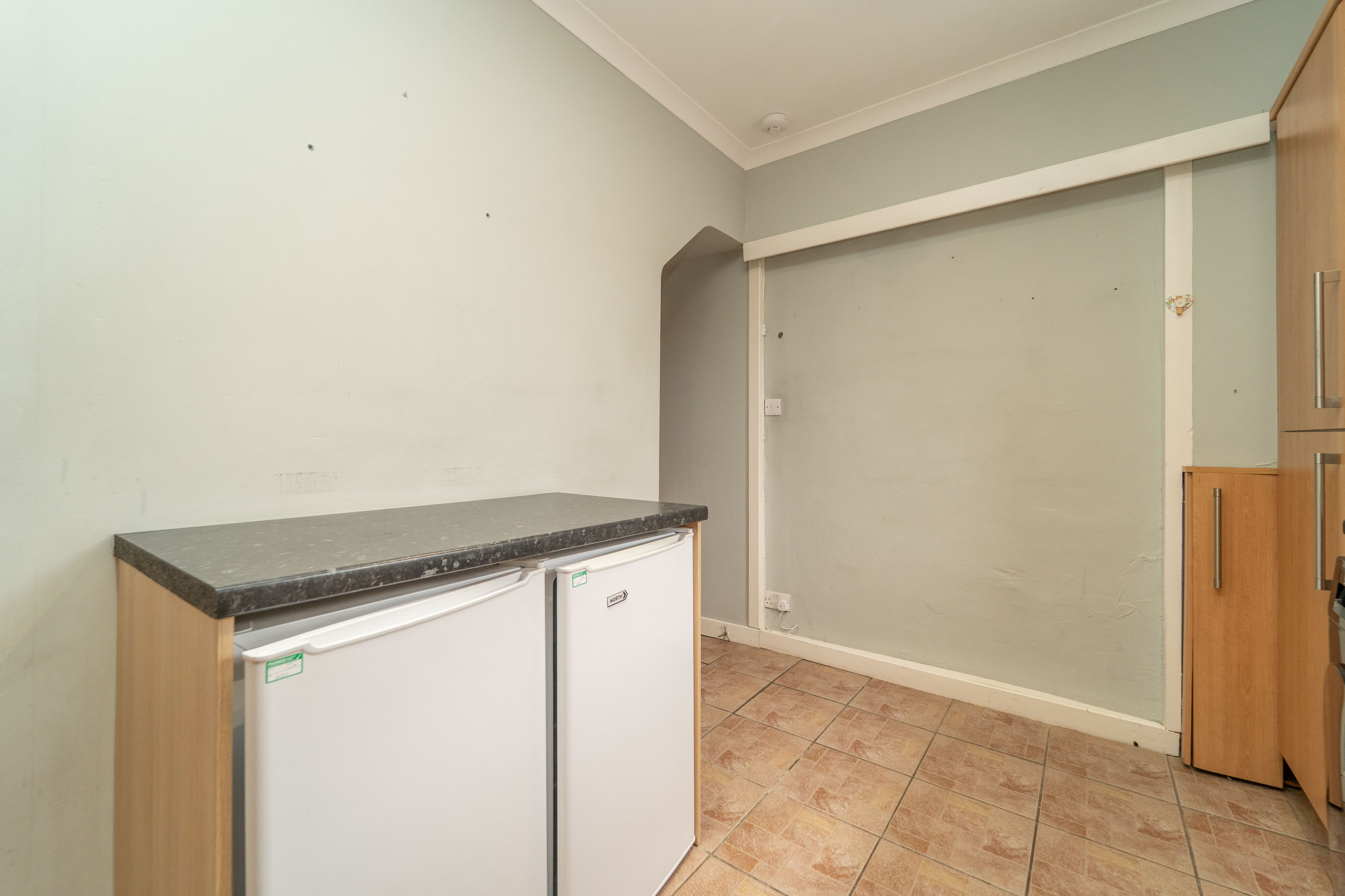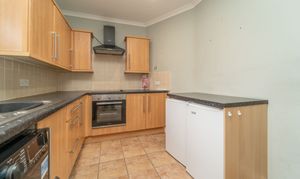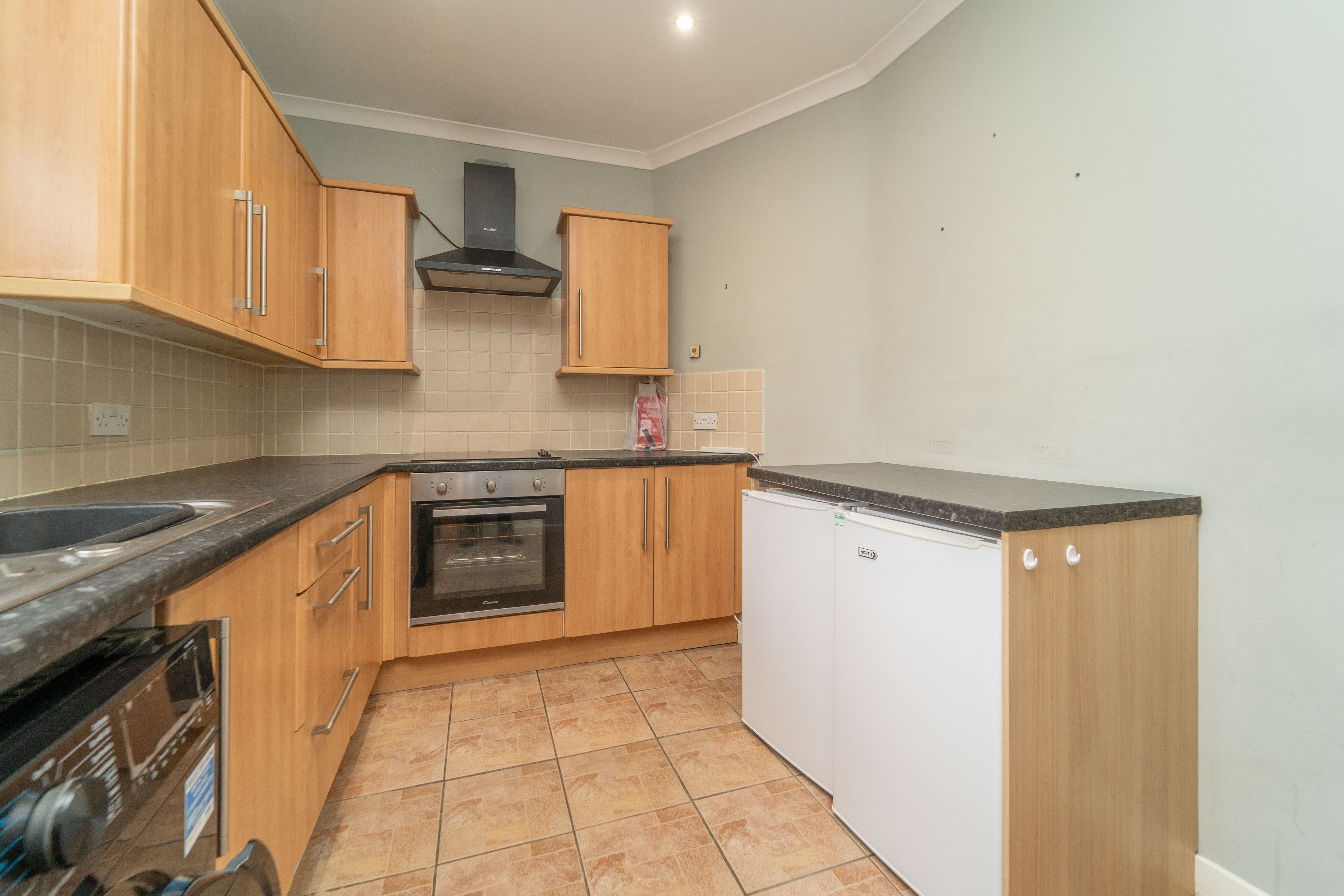 3.544m x 2.447m (11’07” x 08’00”) This lovely room has windows allowing in natural light. Fitted with a contemporary kitchen, there are several wall and floor mounted units with wood effect frontages and complimentary work surfaces. The painted walls complement the tiling to the floor and there are tiled splashbacks. The integrated electric oven, four-ring hob, cooker hood, washing machine and under counter fridge and freezer, will all be included in the sale. The sink area comprises of a stainless-steel sink with mixer tap and drainer. Recessed ceiling downlights, a heat detector, a kick plate heater and power points are supplied.