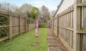 The welcoming approach to this property is located to the side of the property. Mainly finished with artificial grass, this area provides a private garden and a driveway.