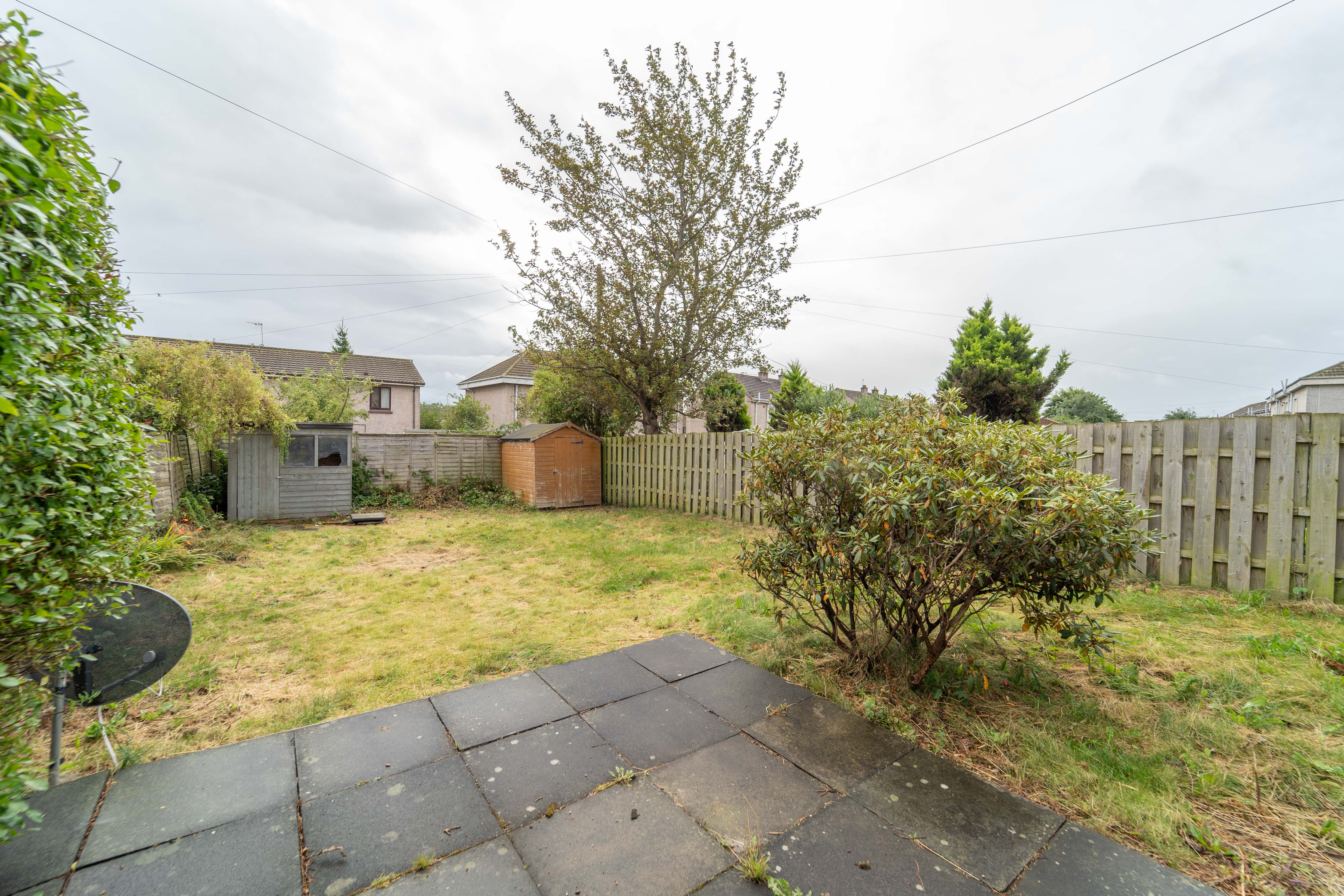This great outdoor space has a paved area close to the property and the rest of the garden finished with grass. There is a side gate for access to the front. There are two wooden sheds, which will be included in the sale. This sizable enclosed garden provides an excellent space to sit and relax or entertain.