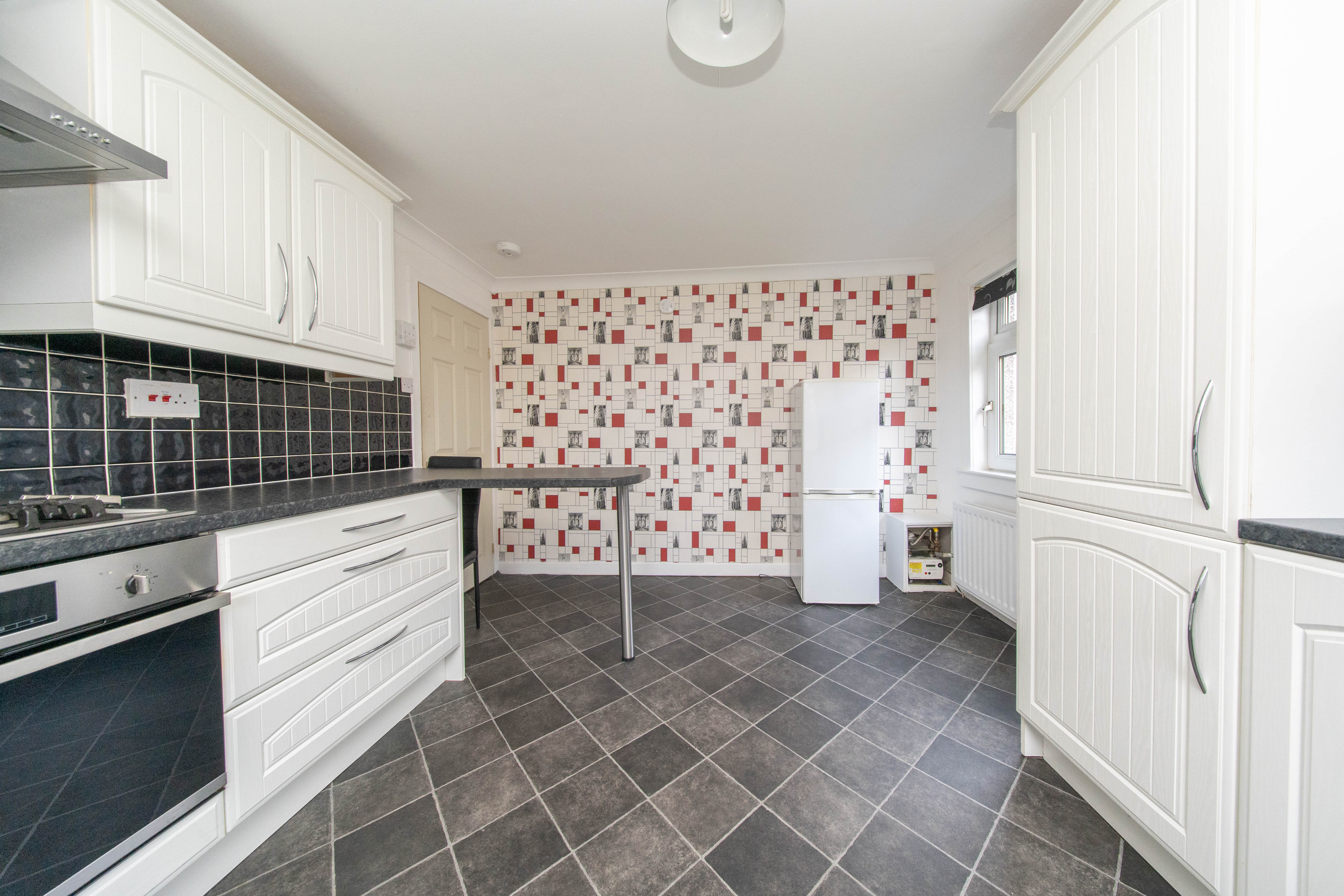 4.025m x 3.209m (13’02” x 10’06”) A well sized kitchen fitted with a range of wall and base units complemented by a laminate work surface providing ample preparation space. The kitchen features a built in oven with gas hob and extractor fan above, along with tiled splashbacks surrounding the work areas. There is space for freestanding appliances including a fridge freezer and washing machine. The room is finished with tiled flooring, ceiling mounted lighting and a window overlooking the rear of the property allowing natural light into the space.