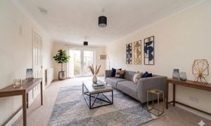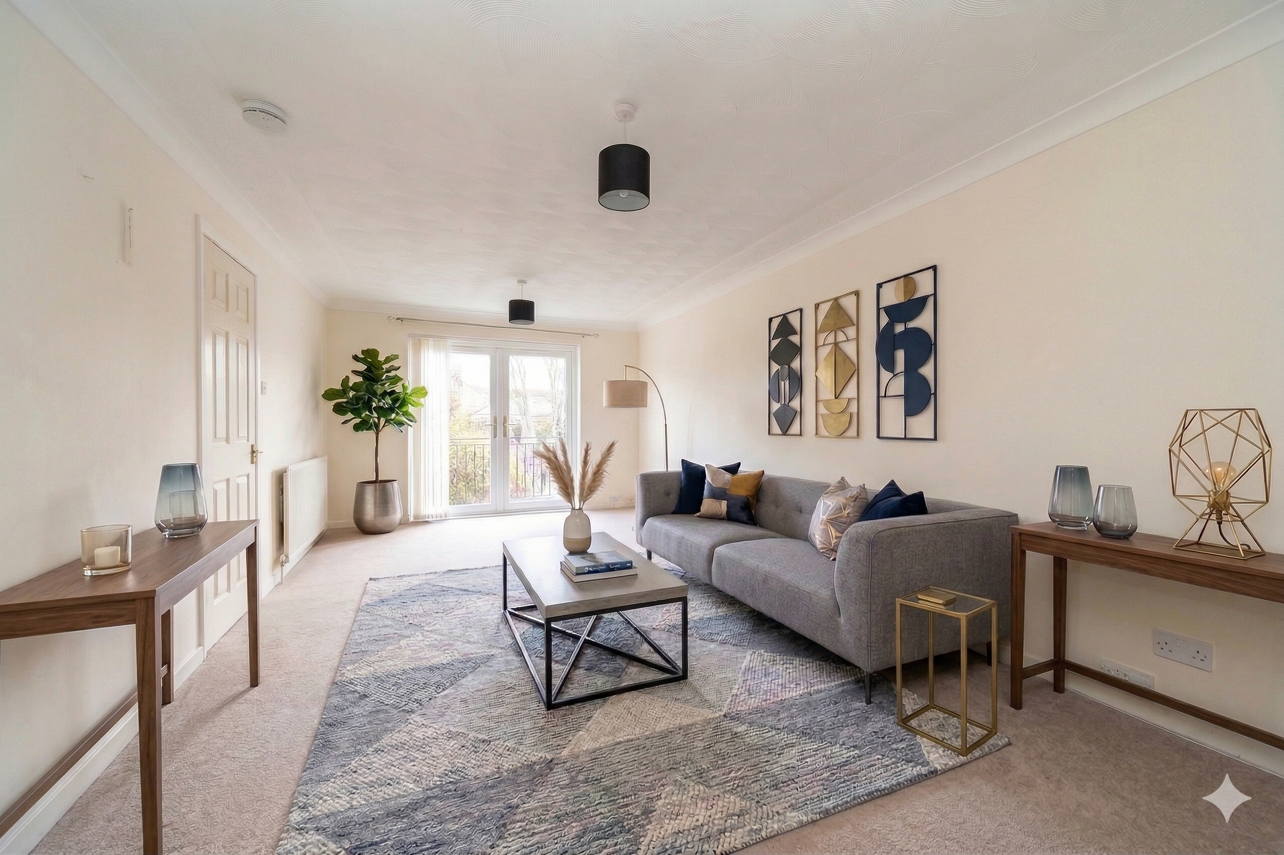 6.476m x 3.164m (21’02” x 10’04”) The spacious lounge and dining area offers excellent proportions for both relaxing and entertaining. The room features carpeted flooring and painted walls with ceiling mounted light fittings and a ceiling mounted smoke detector. A large window to the front allows plenty of natural light to fill the space, while French doors to the rear provide direct access outside and enhance the bright dual aspect feel. The room also benefits from a radiator and multiple power points.