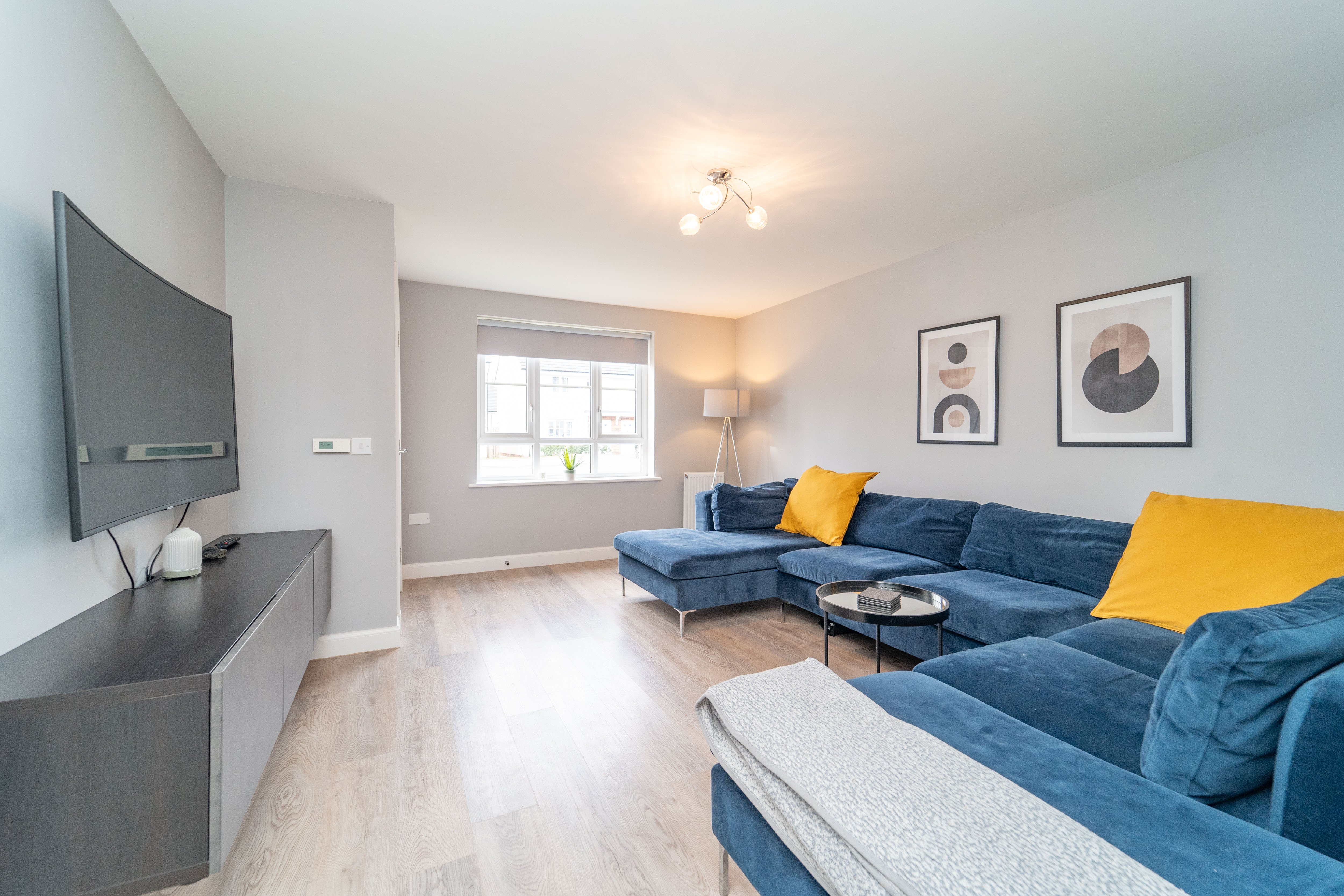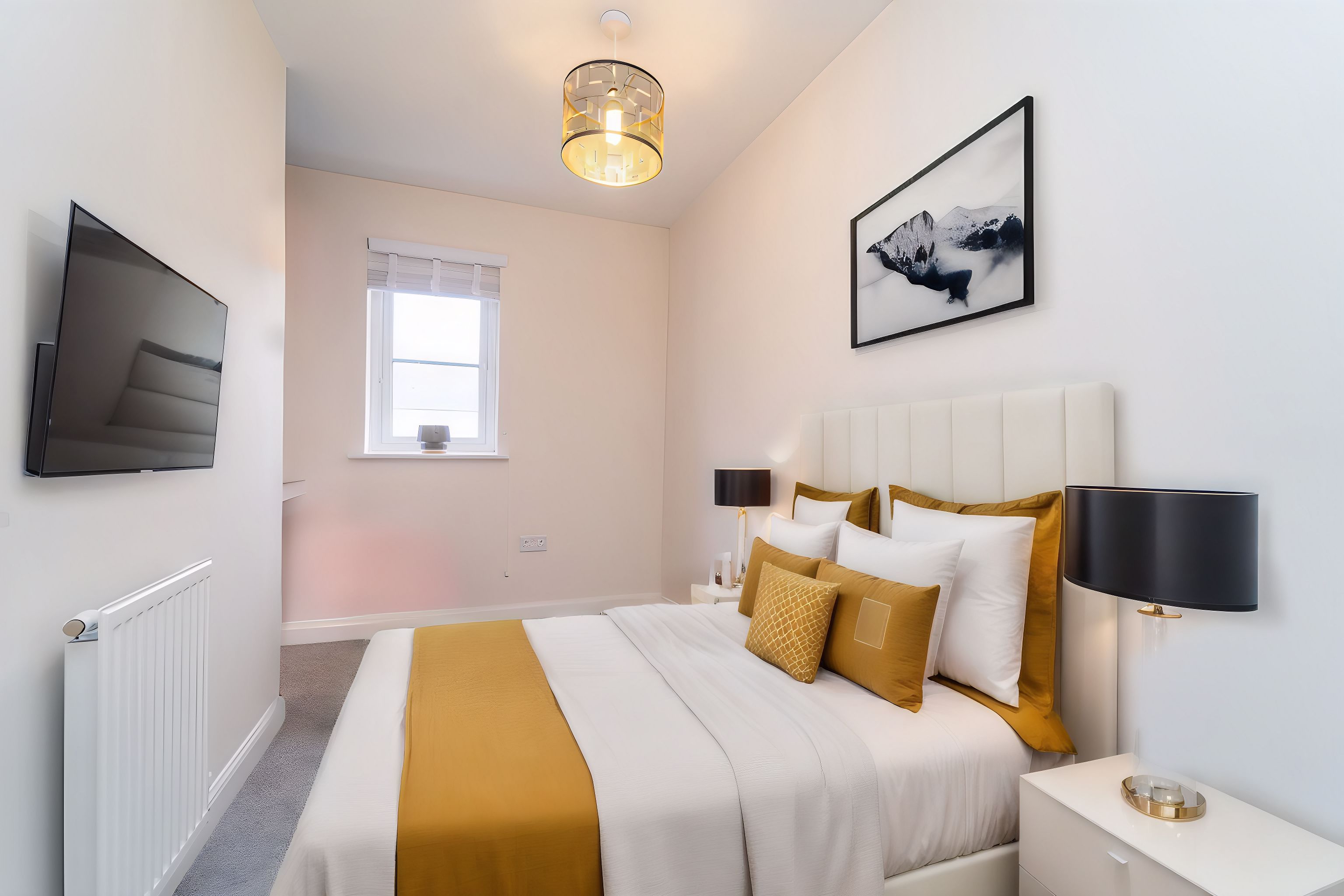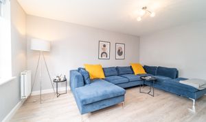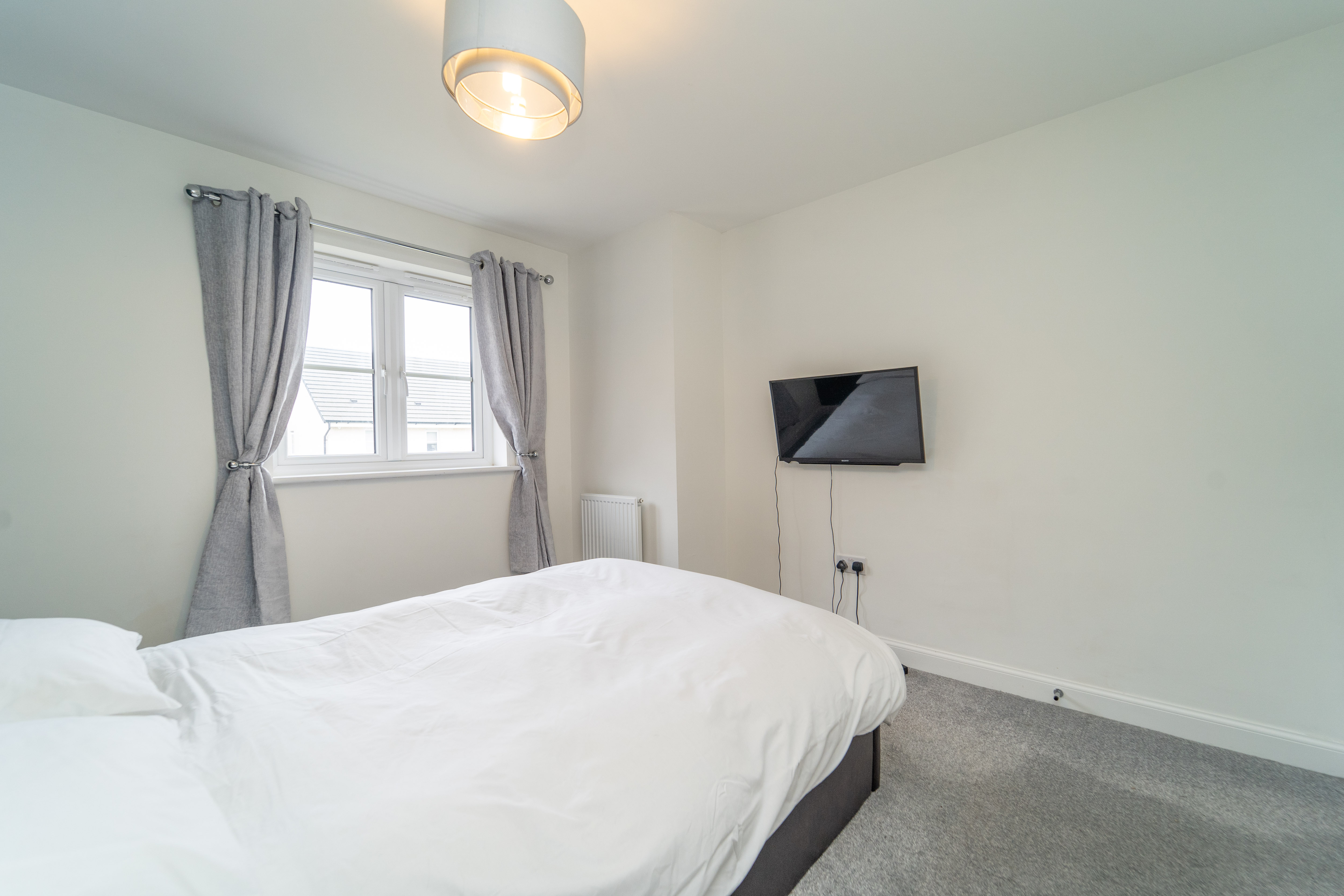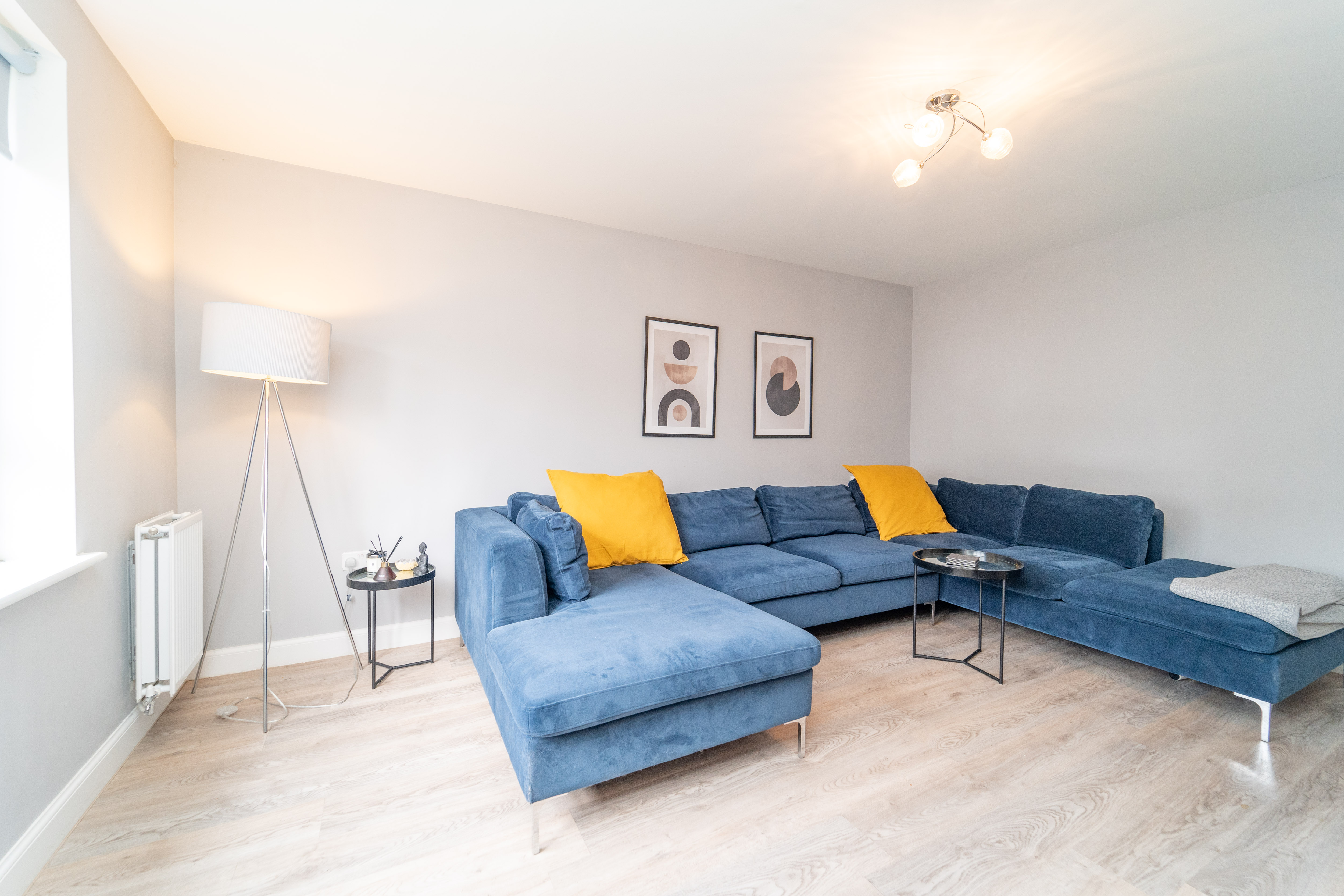 Dimensions: 13' 3'' x 12' 7'' (4.05m x 3.84m). Bedroom 1 is a King-sized room and has been freshly decorated. There is a striking Midnight Blue feature wall – giving a sense of tranquillity & relaxation – there is also a large, front facing window which allows an abundance of light in.