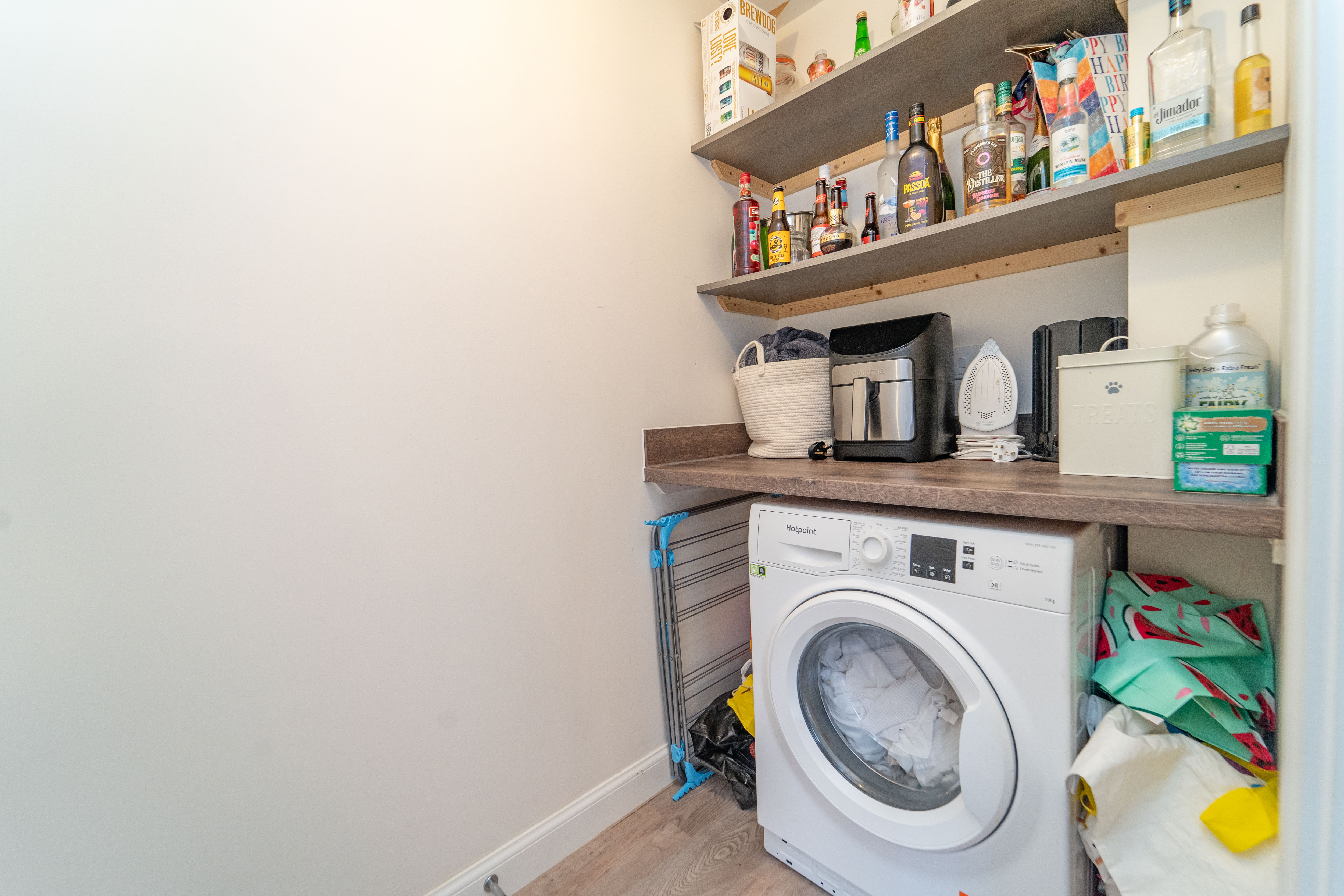 Dimensions: 6' 7'' x 3' 10'' (2.00m x 1.16m). Handily located just off the kitchen, the utility area offers additional wash & preparation space. There is central lighting, laminate flooring, and access to the W.C.