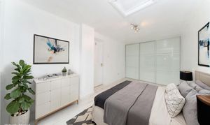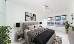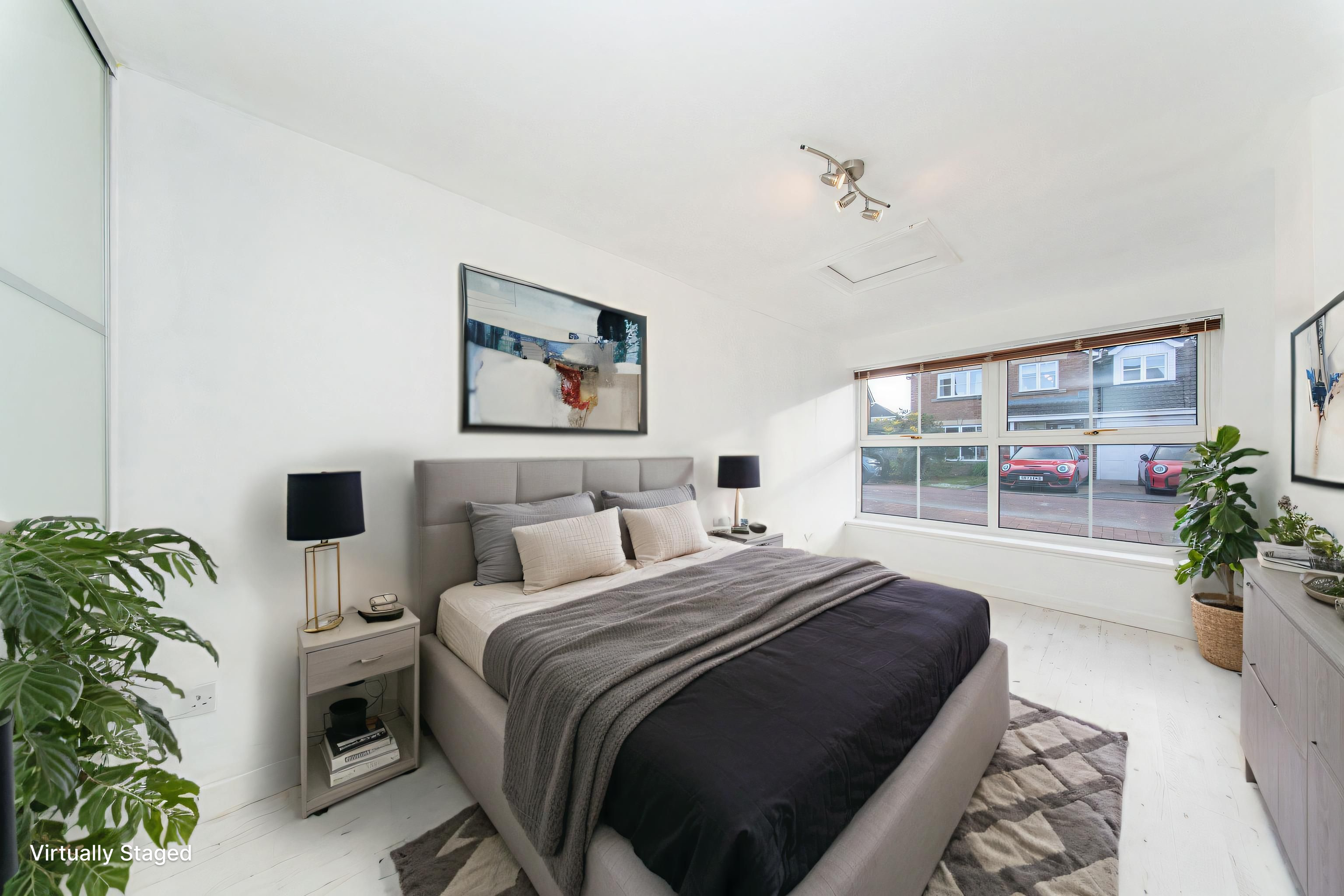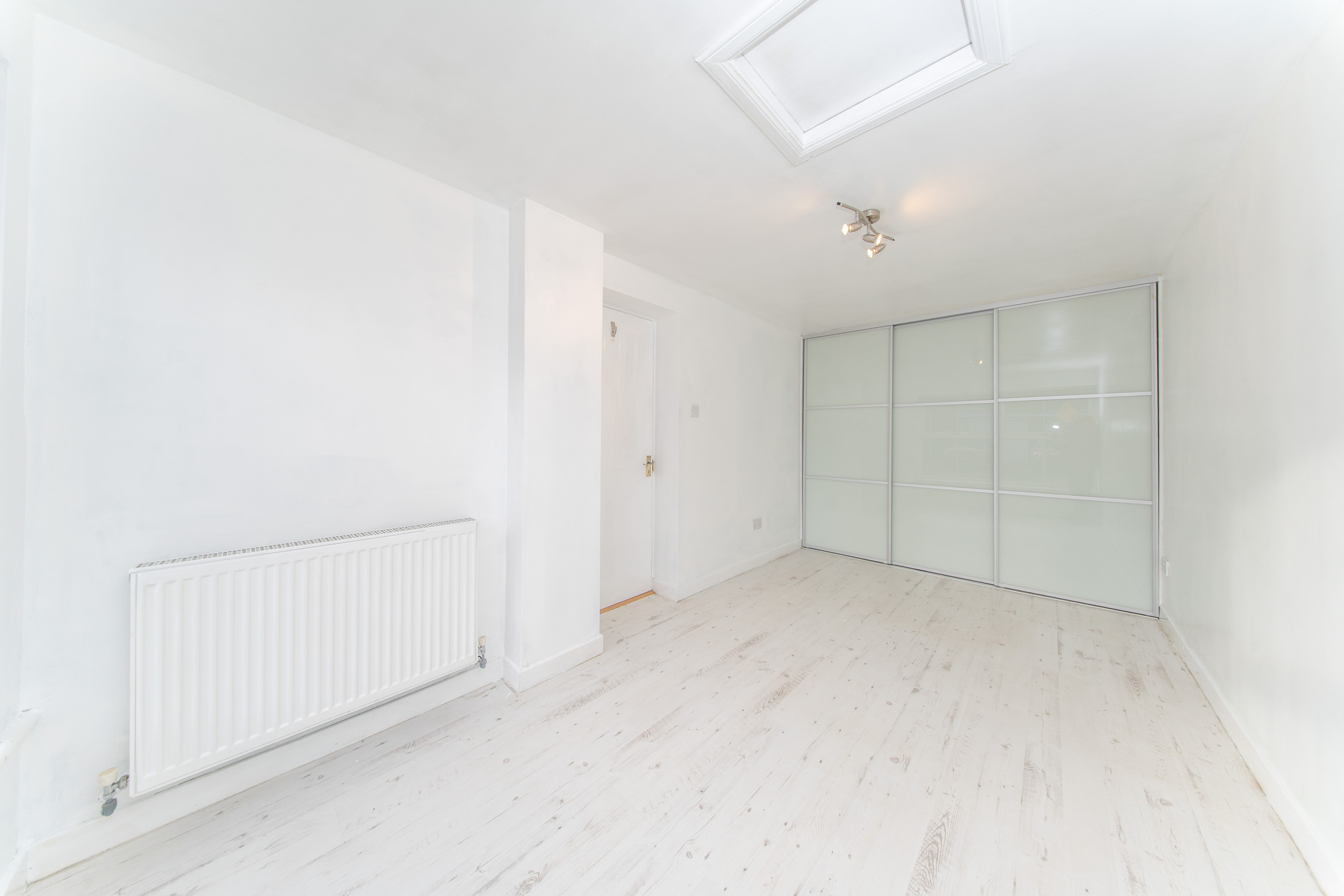 4.429m x 2.391m (14’06” x 07’10”) Located on the ground floor, this converted garage provides great, versatile space. The front facing windows allow plenty of natural light into the space, with a ceiling light providing additional illumination. A large built-in wardrobe has lots of hanging and shelving storage. The room has been decorated with white painted walls and laminate flooring. Power points, a radiator and an attic hatch are all supplied.