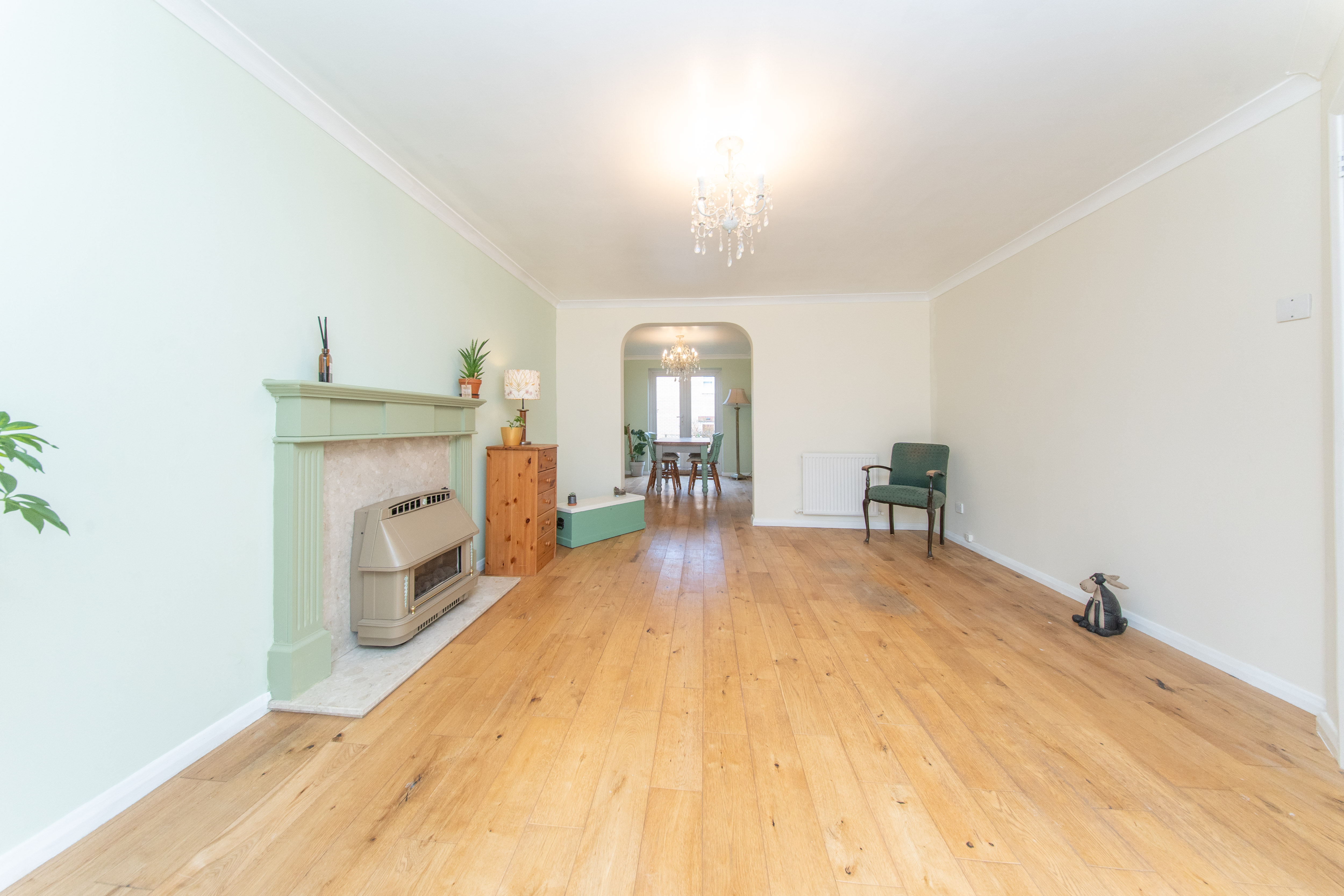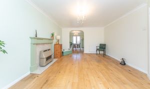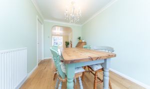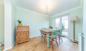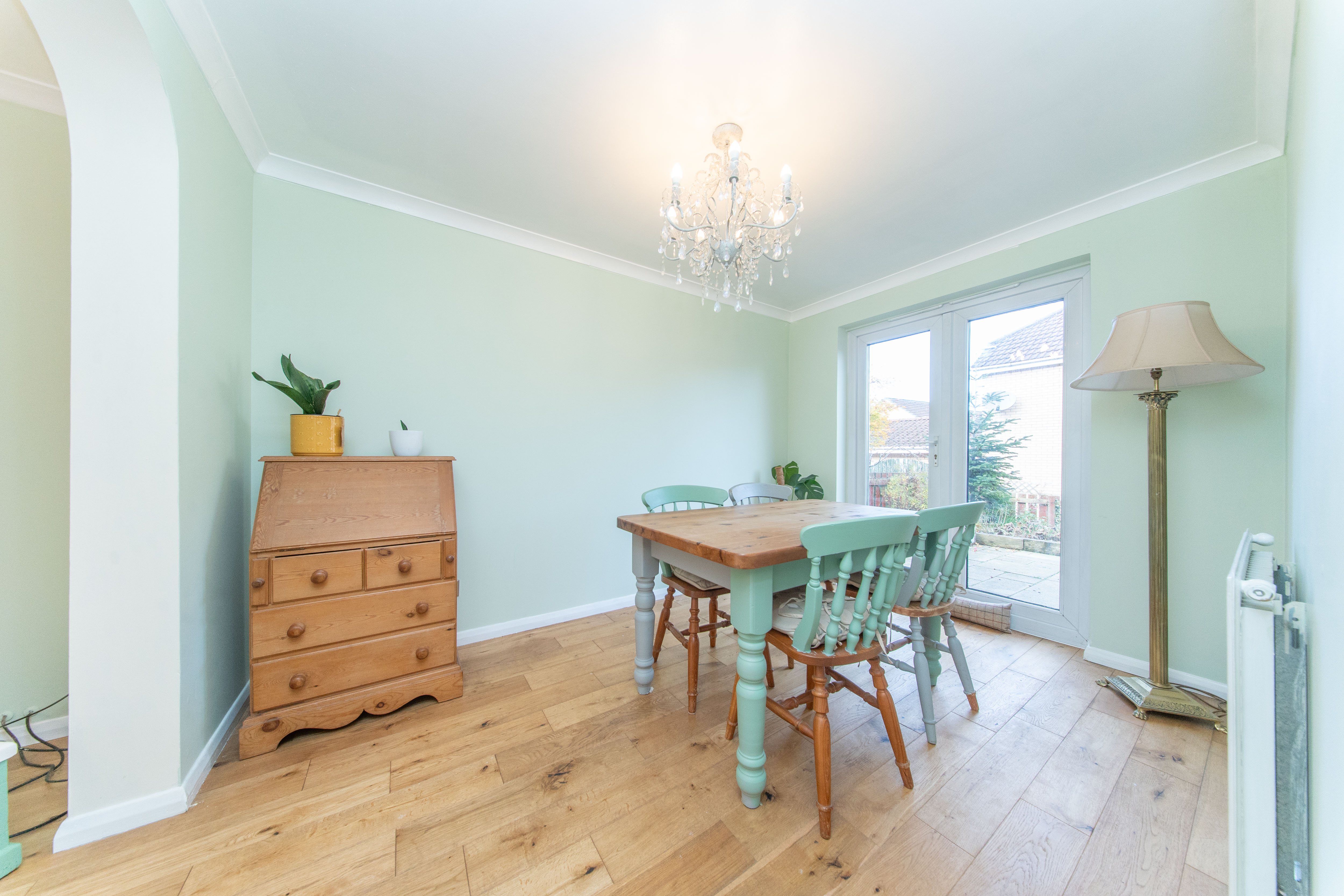 3.439m x 2.447m (11’03” x 08’00”) This fabulous room features real wood flooring and soft green painted walls, creating a calm and inviting atmosphere. Double doors open directly onto the rear garden and allow natural light to flow through from outside being enhanced by a ceiling mounted light. A radiator and power points are provided. The open archway connects seamlessly to the lounge, enhancing the sense of space.