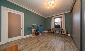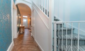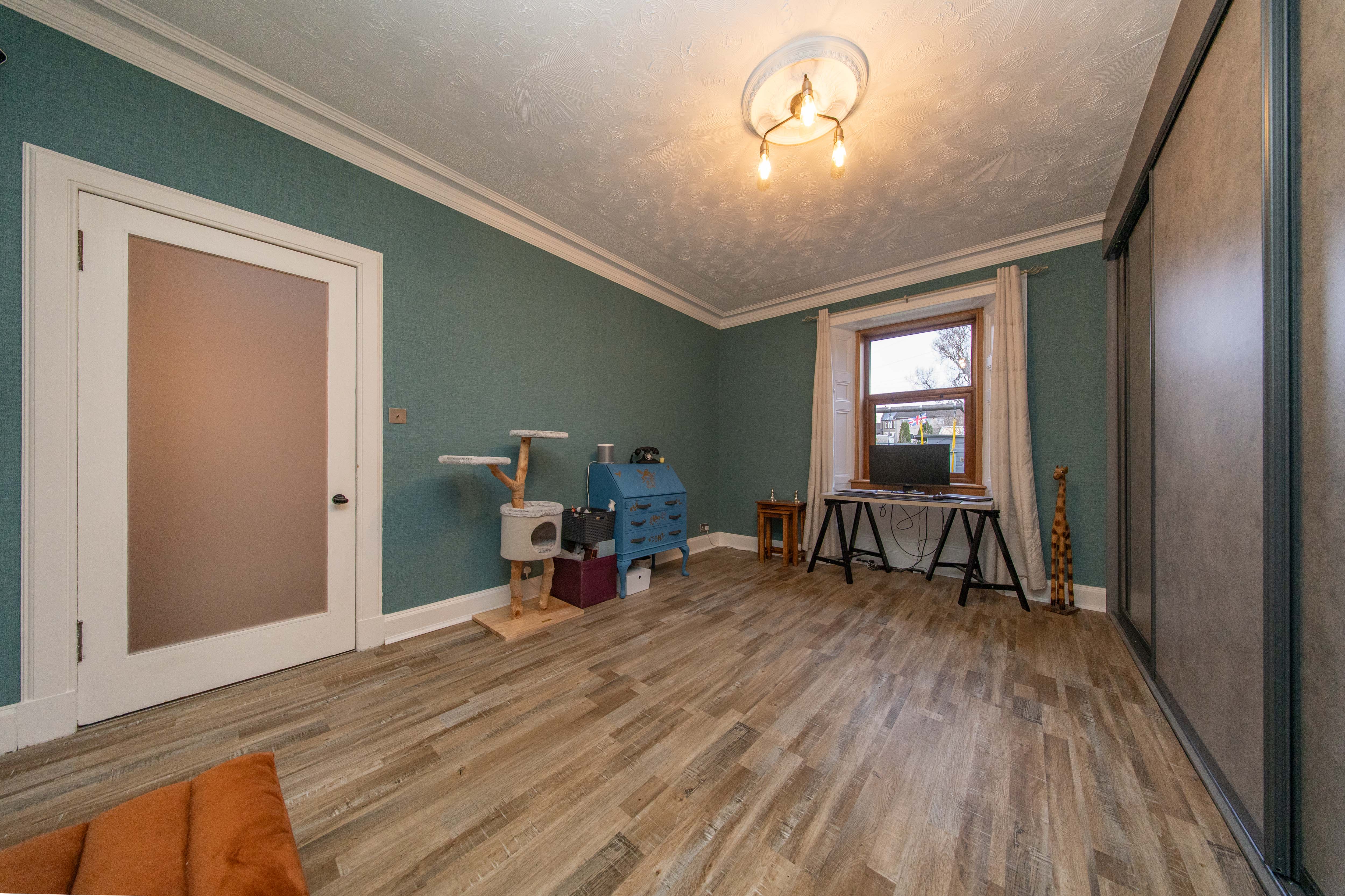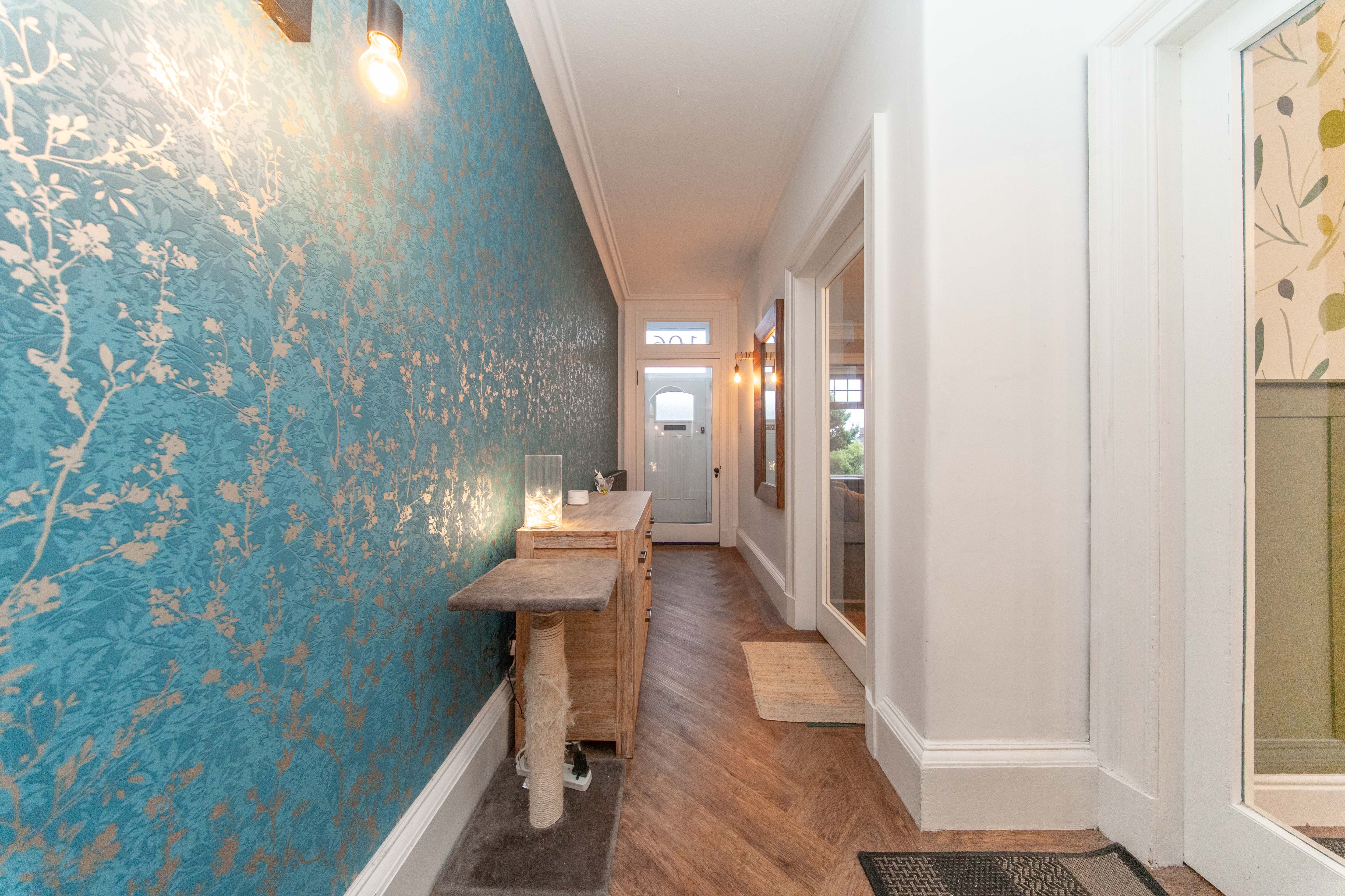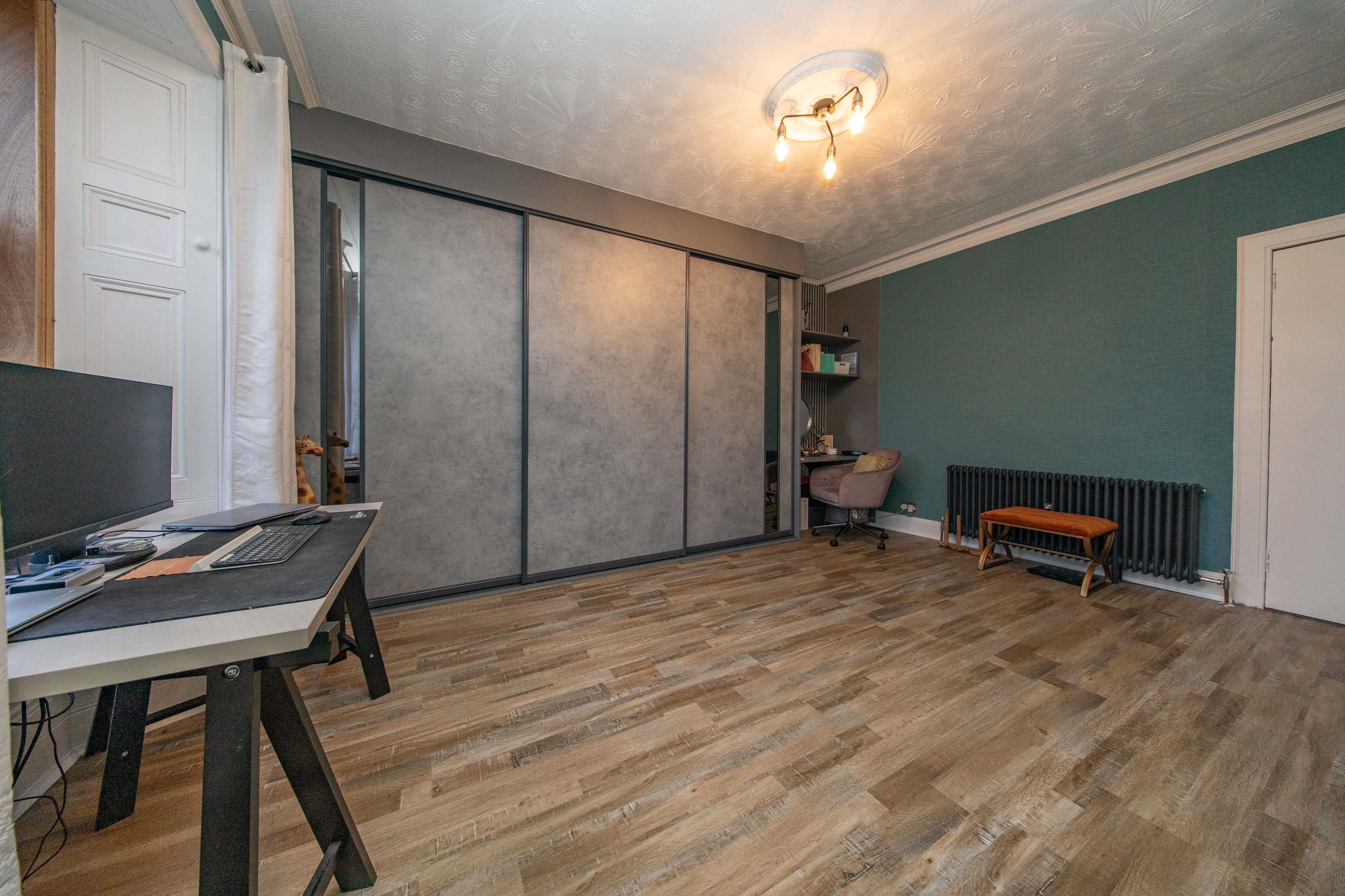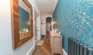 A spacious and stylish double bedroom offering a designer fitted triple wardrobe and a striking industrial radiator. The rear-facing window enjoys views over the garden, while the generous proportions allow the room to be easily utilised as a home office or second reception room.